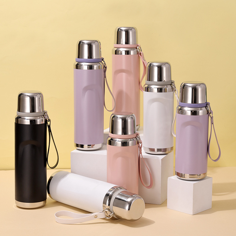 새로운 높은 색상 가치 대용량 304 스테인레스 스틸 보온병 야외 스포츠 휴대용 등산 냄비 소년 소녀 워터 컵