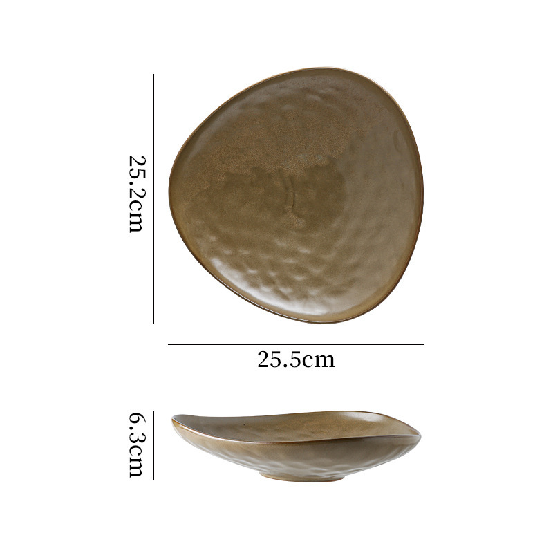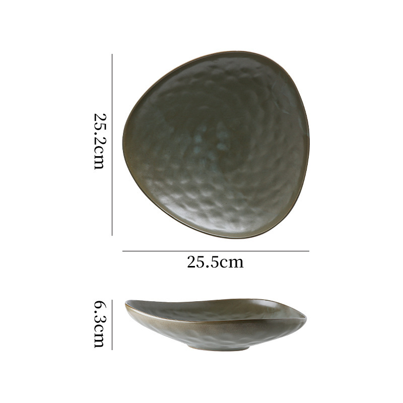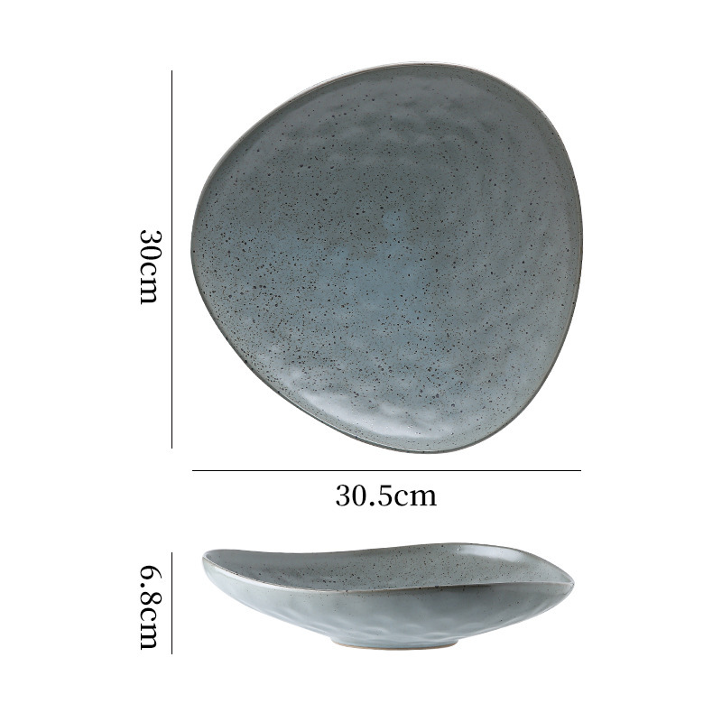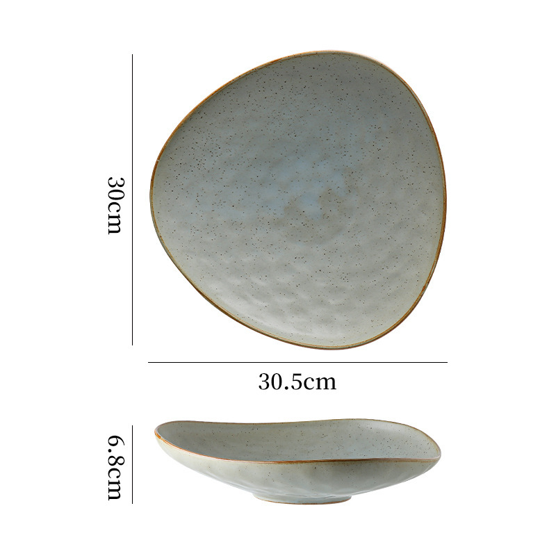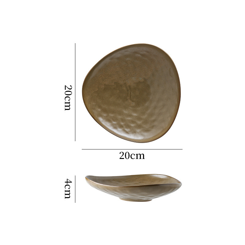 간단하고 간단하고 우아한 삼각형 플레이트 메인 코스 파스타 식사 서양 특수 플레이트 일본식 세라믹 가마 모양의 플레이트