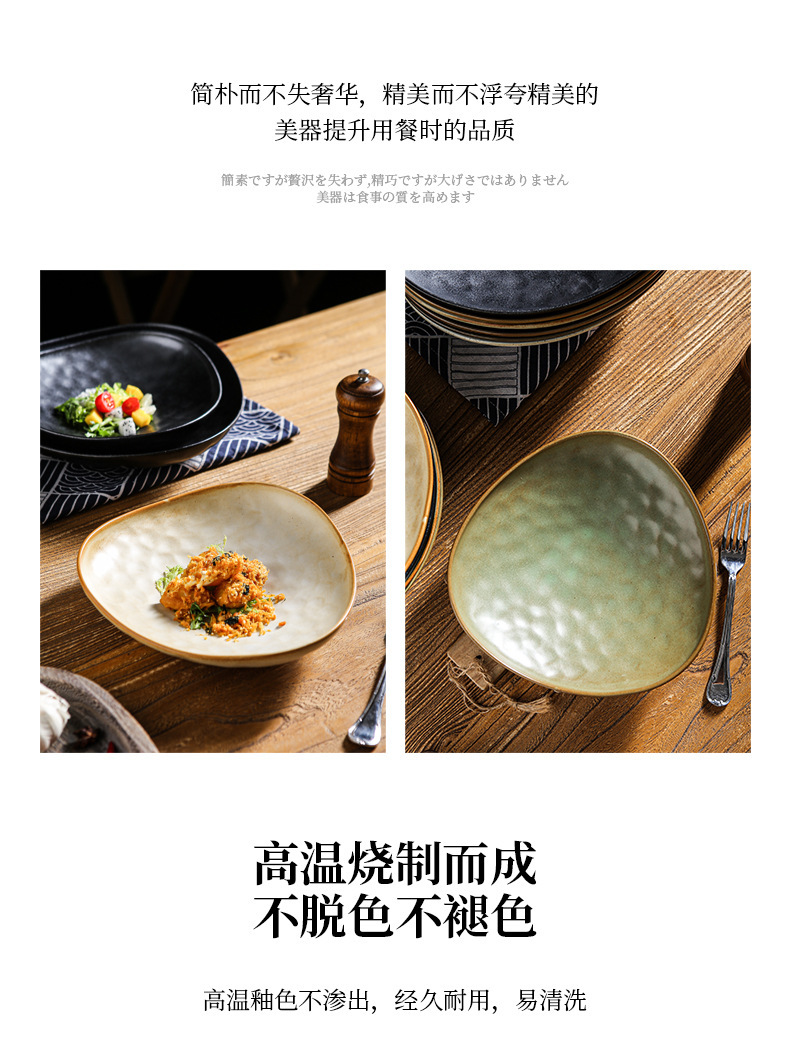 간단하고 간단하고 우아한 삼각형 플레이트 메인 코스 파스타 식사 서양 특수 플레이트 일본식 세라믹 가마 모양의 플레이트스토어 가기
