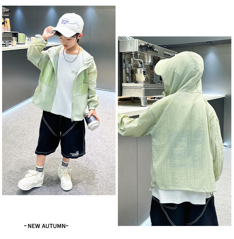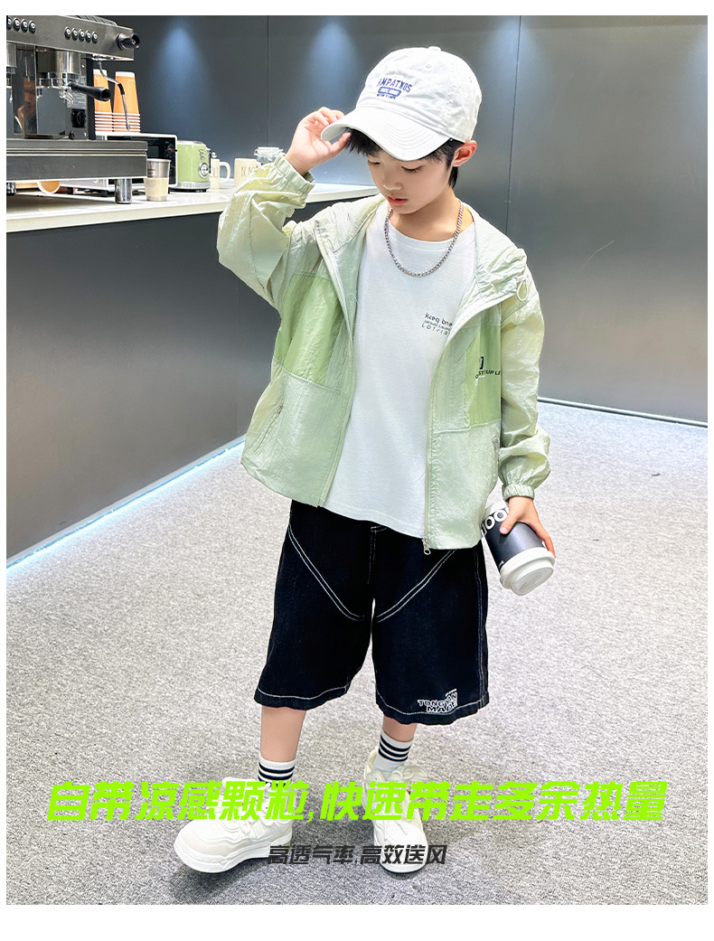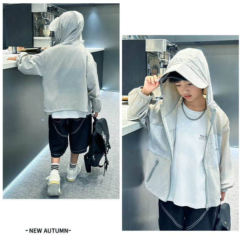 2025년 신상 남아 여름옷 통기성 자외선 차단 재킷 얇고 멋진 소년용 큰 챙 모자 자외선 차단복스토어 가기