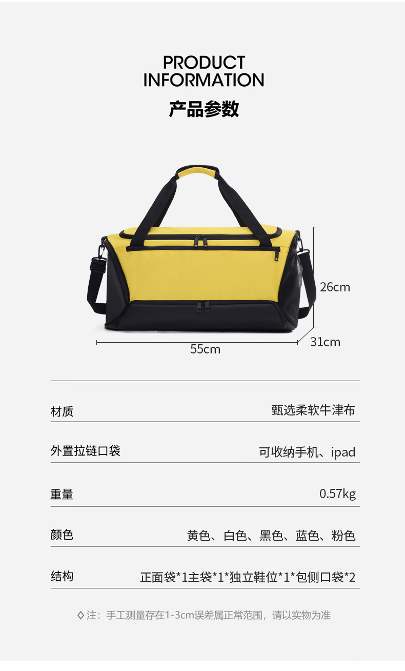 국경 간 독립 신발 창고 대용량 피트니스 가방 인쇄 가능한 로고 단거리 여행 가방 경량 휴대용 수하물 가방