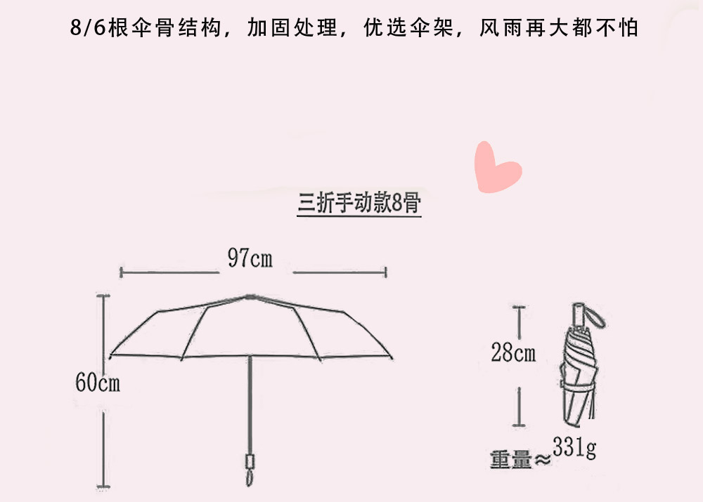 • 원형 50% off 6단 우산 - 벚꽃 핑크