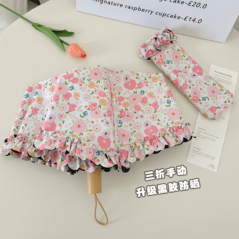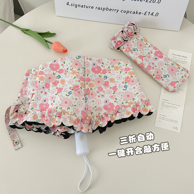 작은 꽃 높은 가치 접히는 완전 자동 그늘 선 스크린 우산 작고 휴대용 안티 자외선 선 스크린 우산