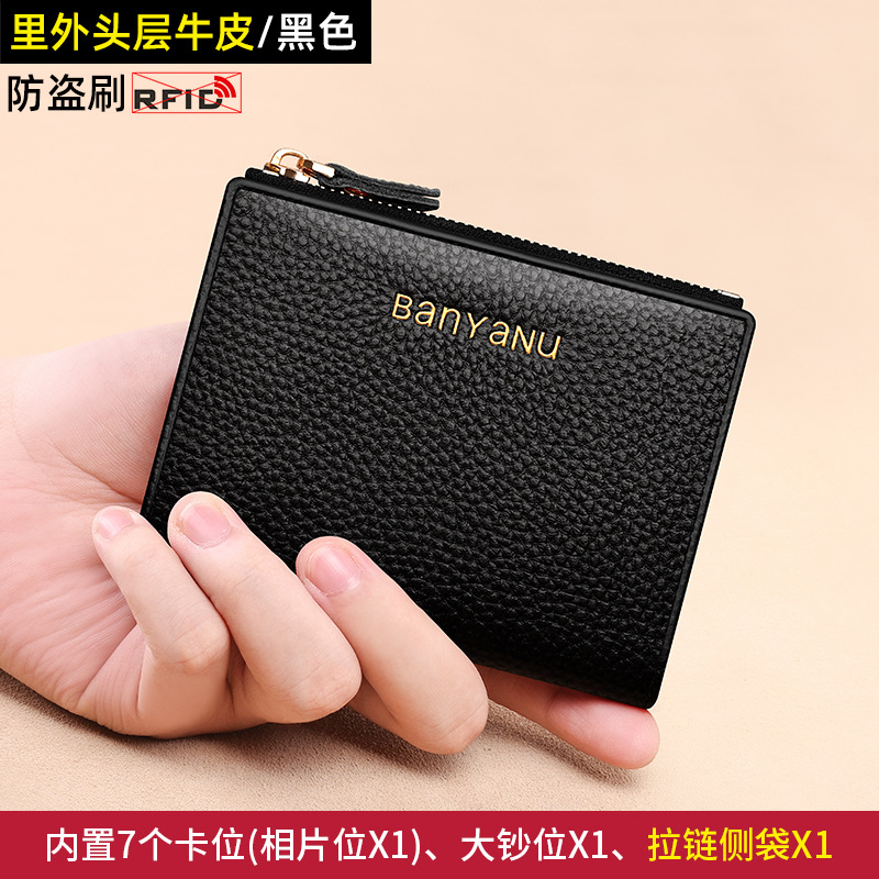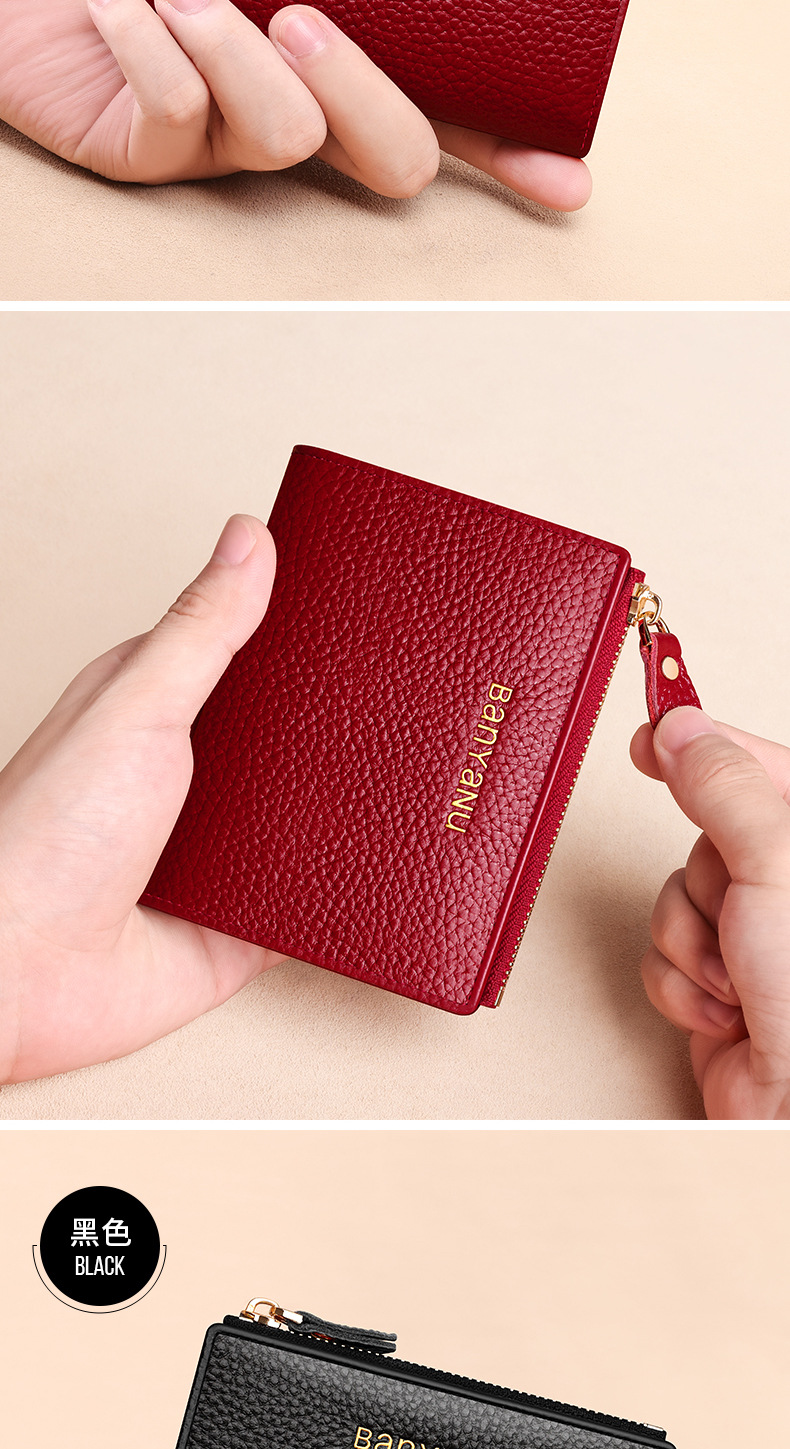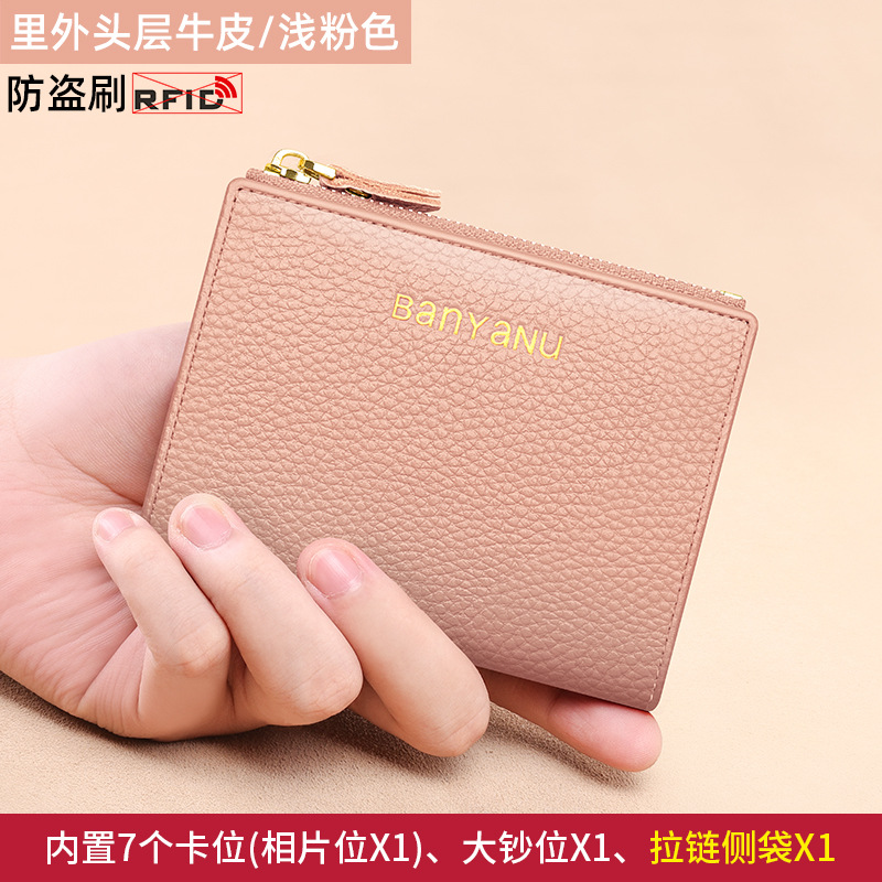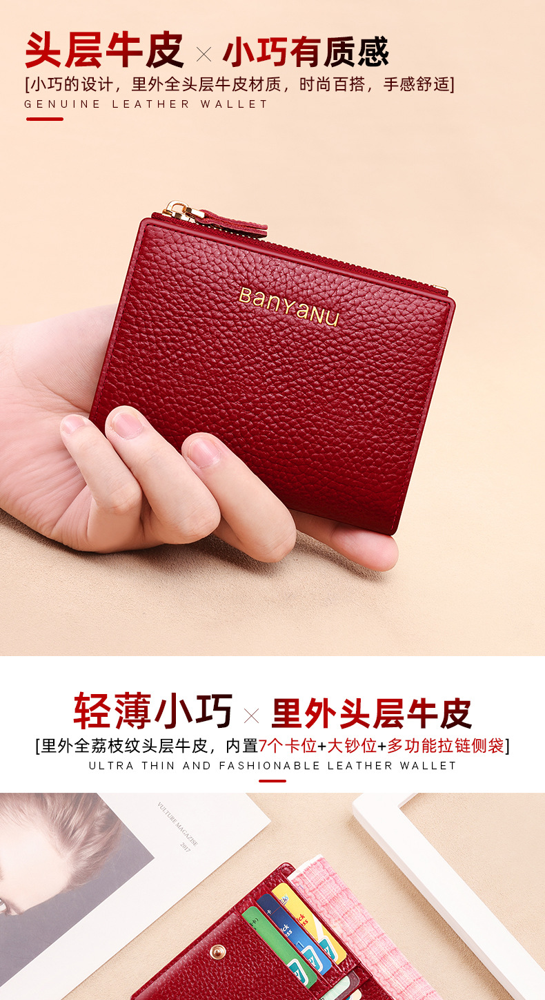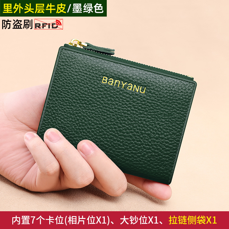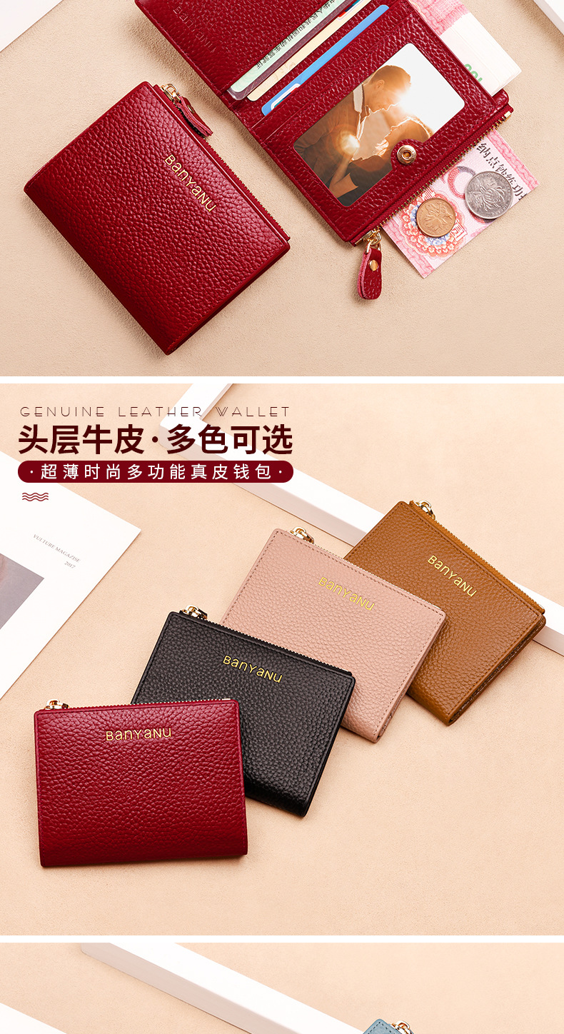 지갑 여성의 짧은 정품 가죽 동전 지갑 2025 새로운 틈새 절묘한 하이 엔드 작은 지갑 카드 가방 부드러운 Cowhide