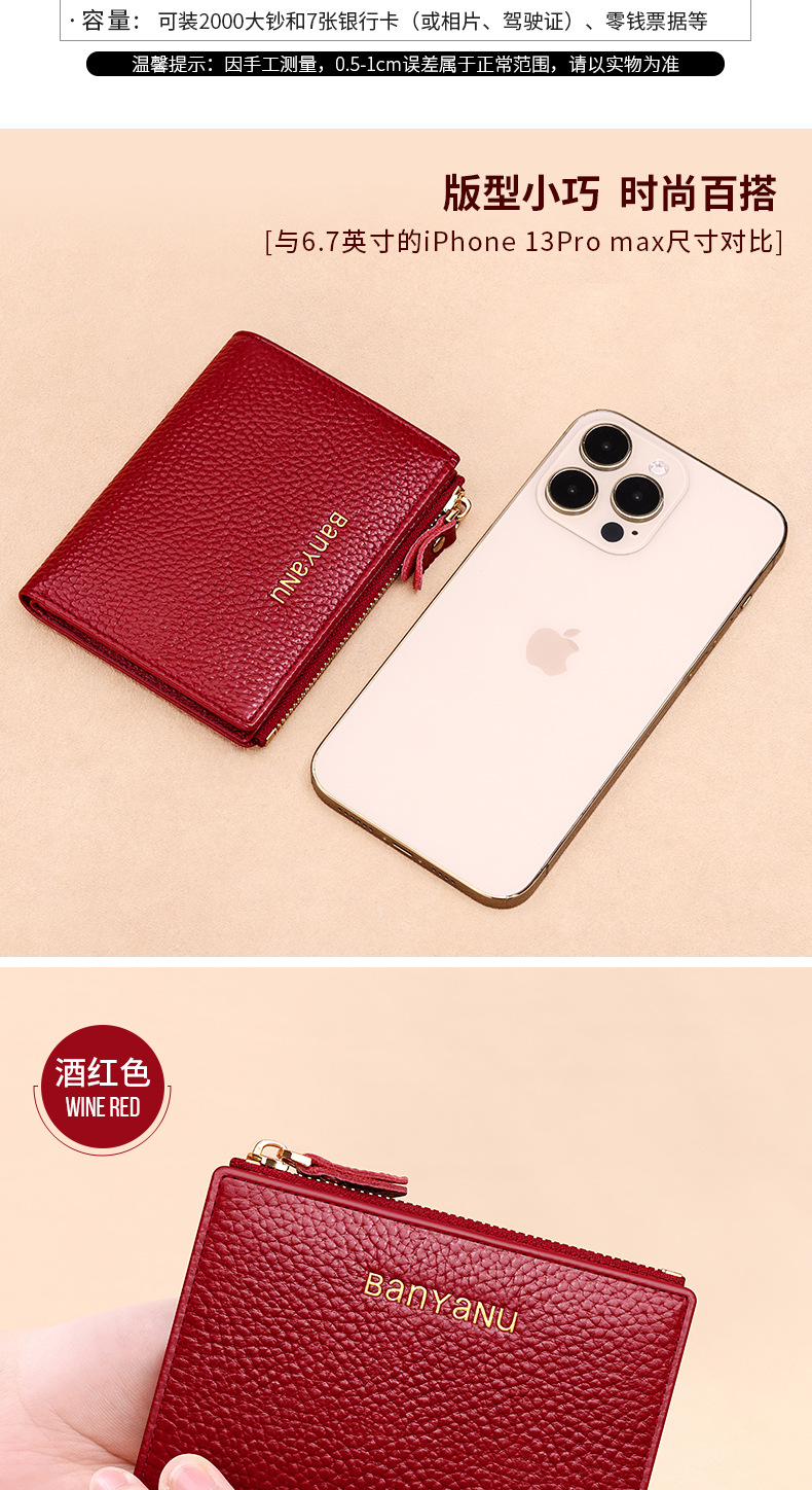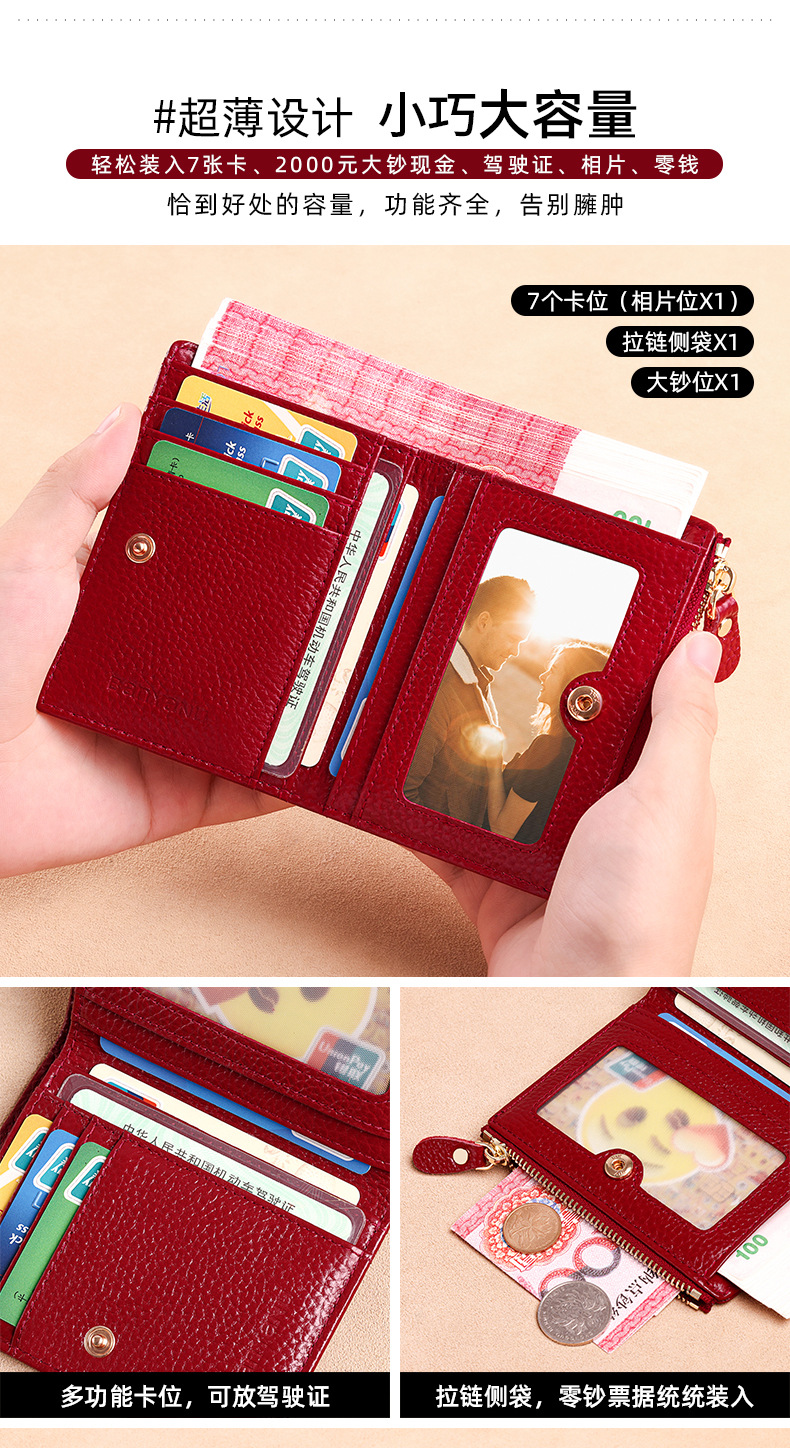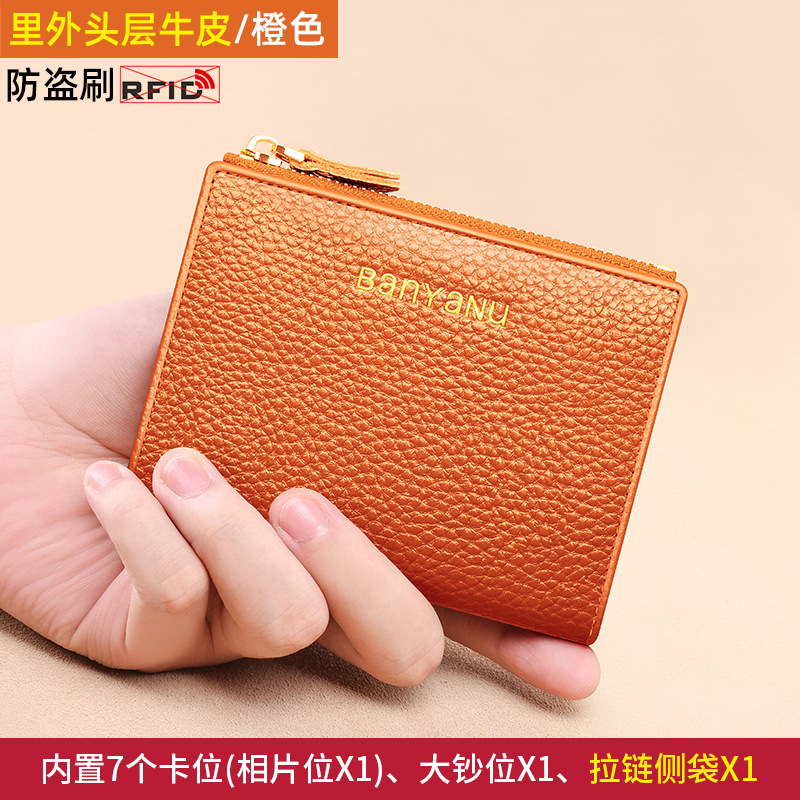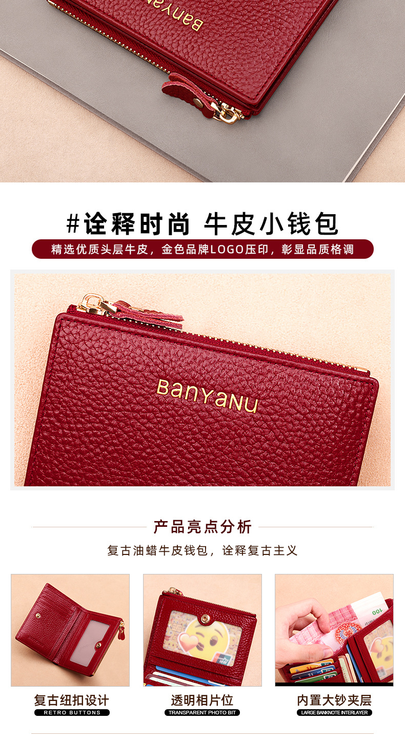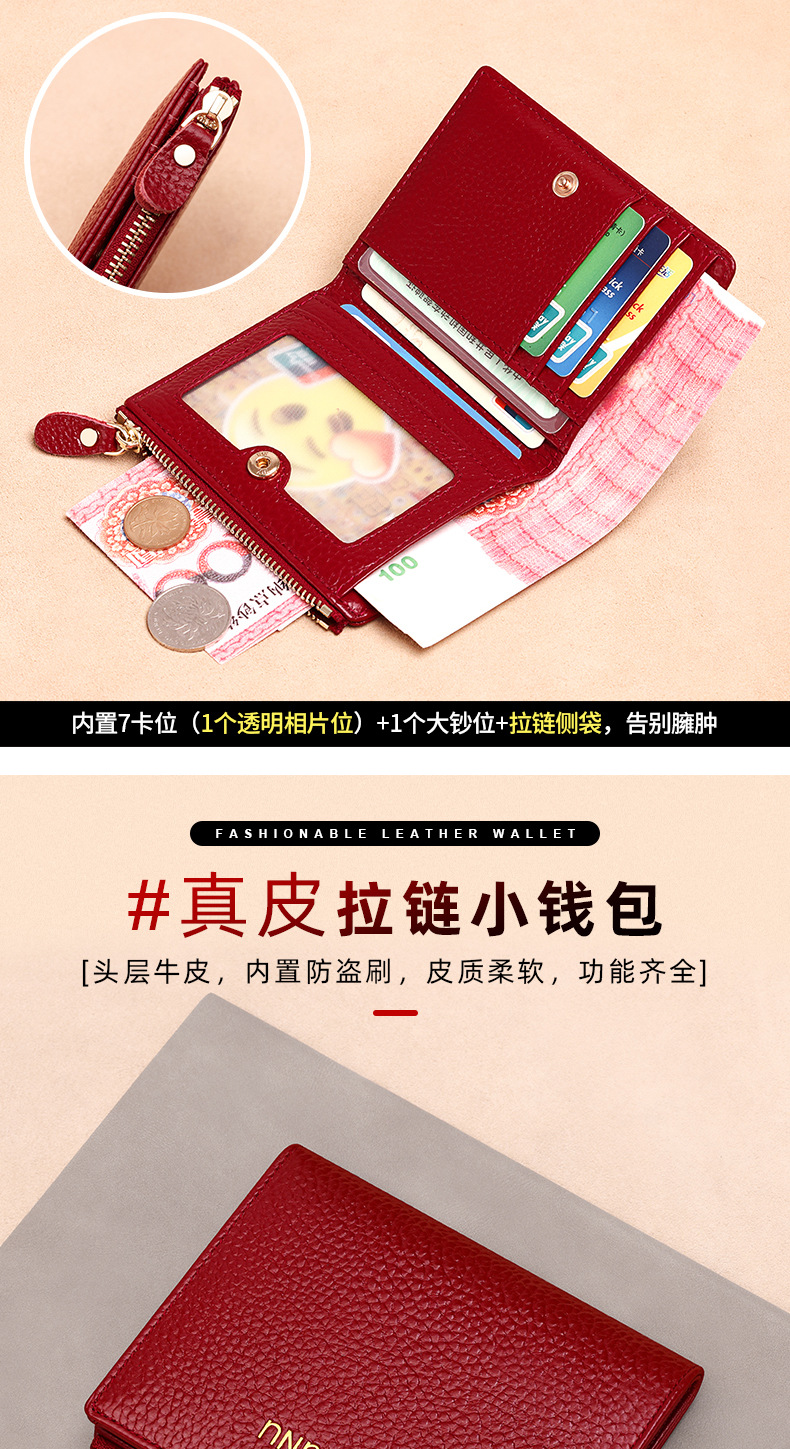 지갑 여성의 짧은 정품 가죽 동전 지갑 2025 새로운 틈새 절묘한 하이 엔드 작은 지갑 카드 가방 부드러운 Cowhide
