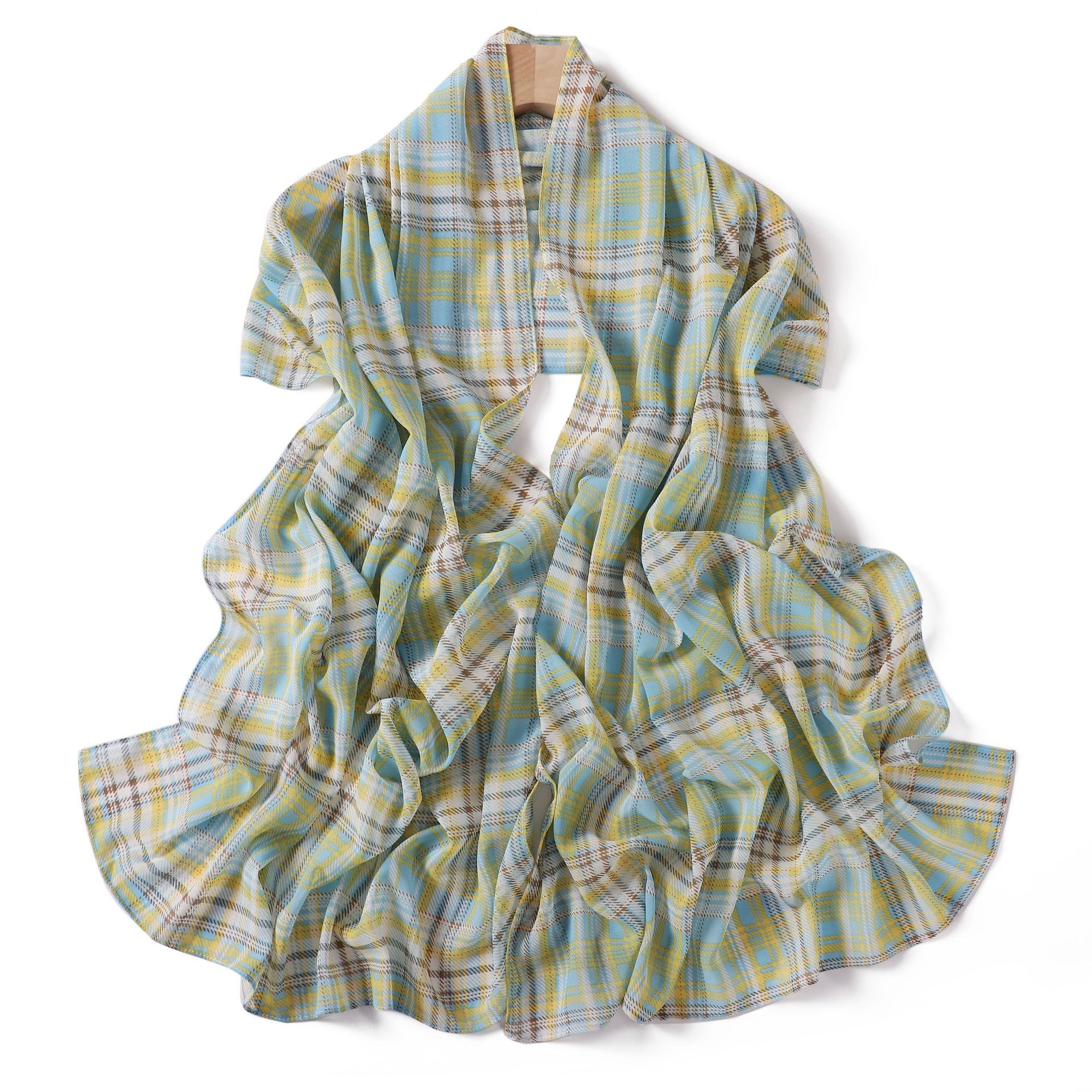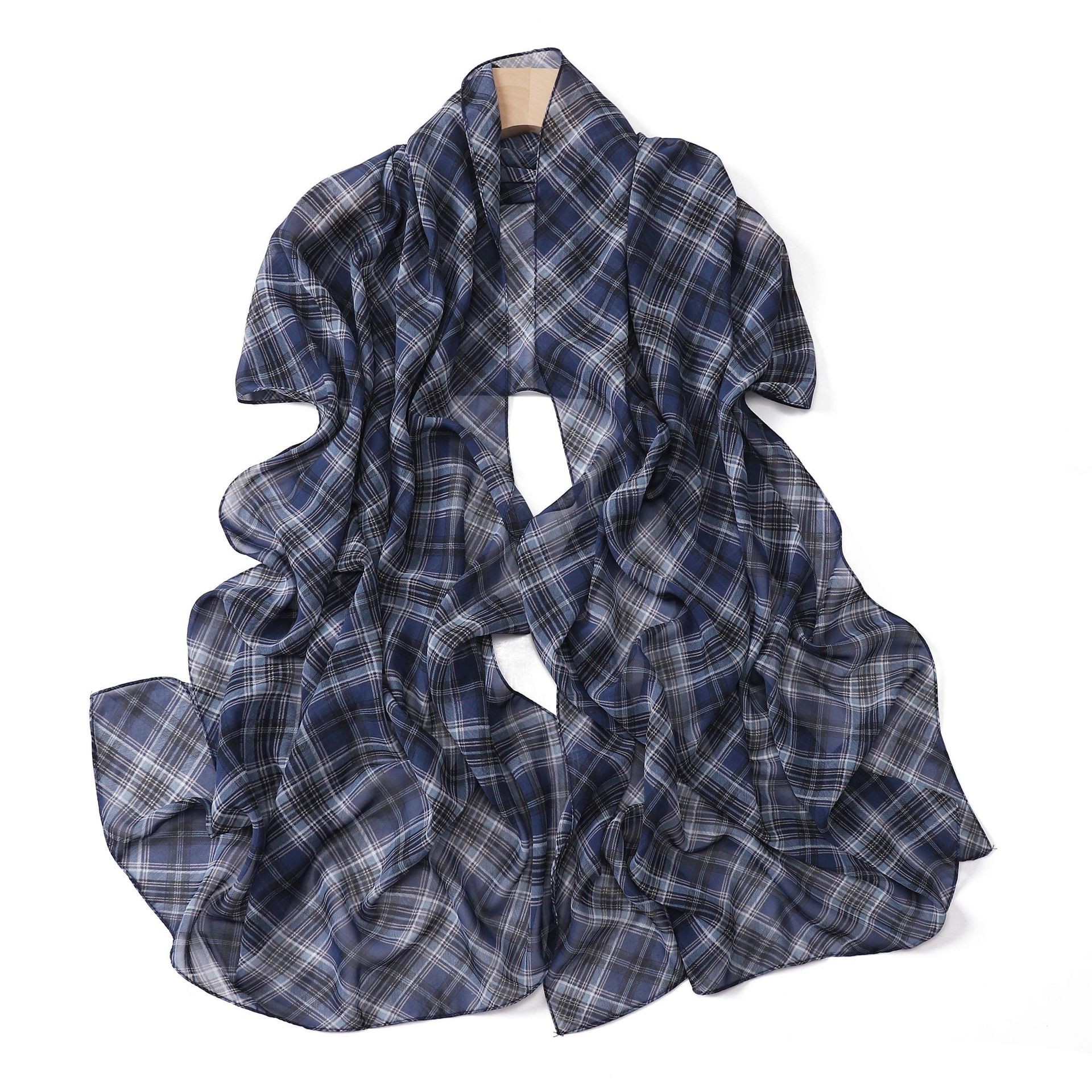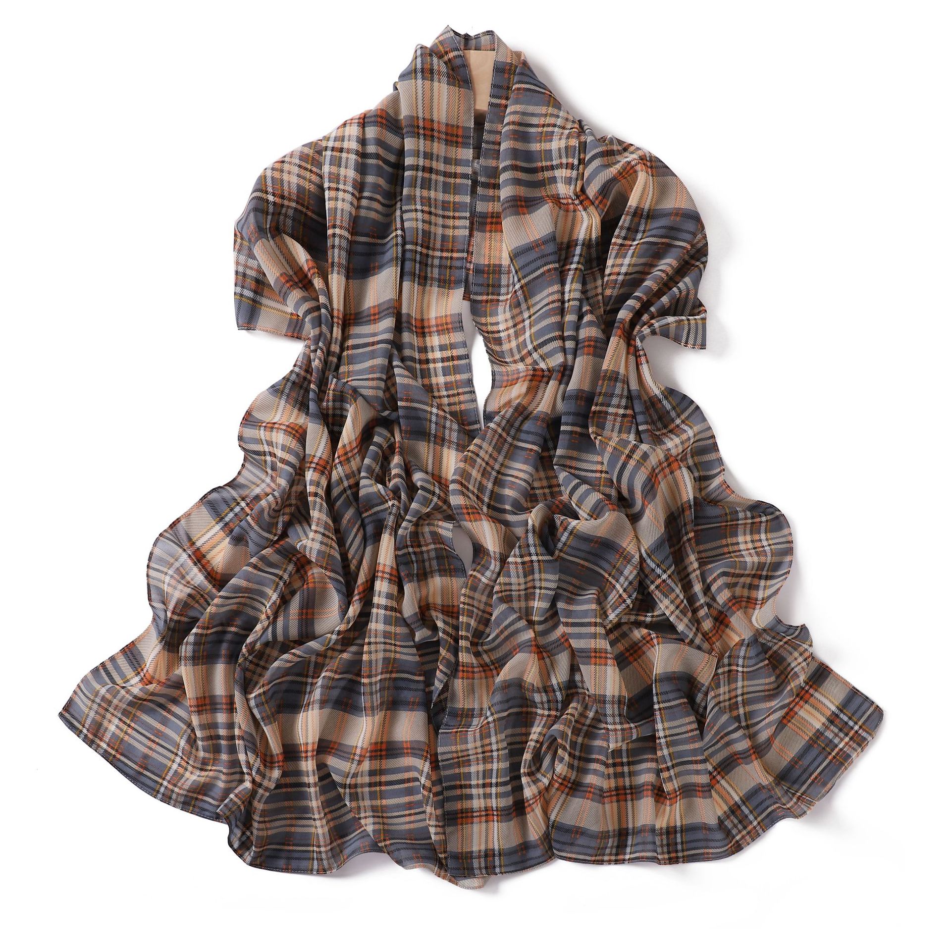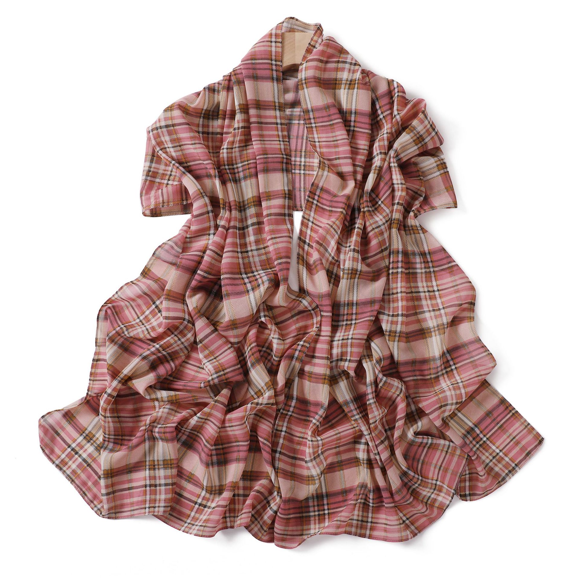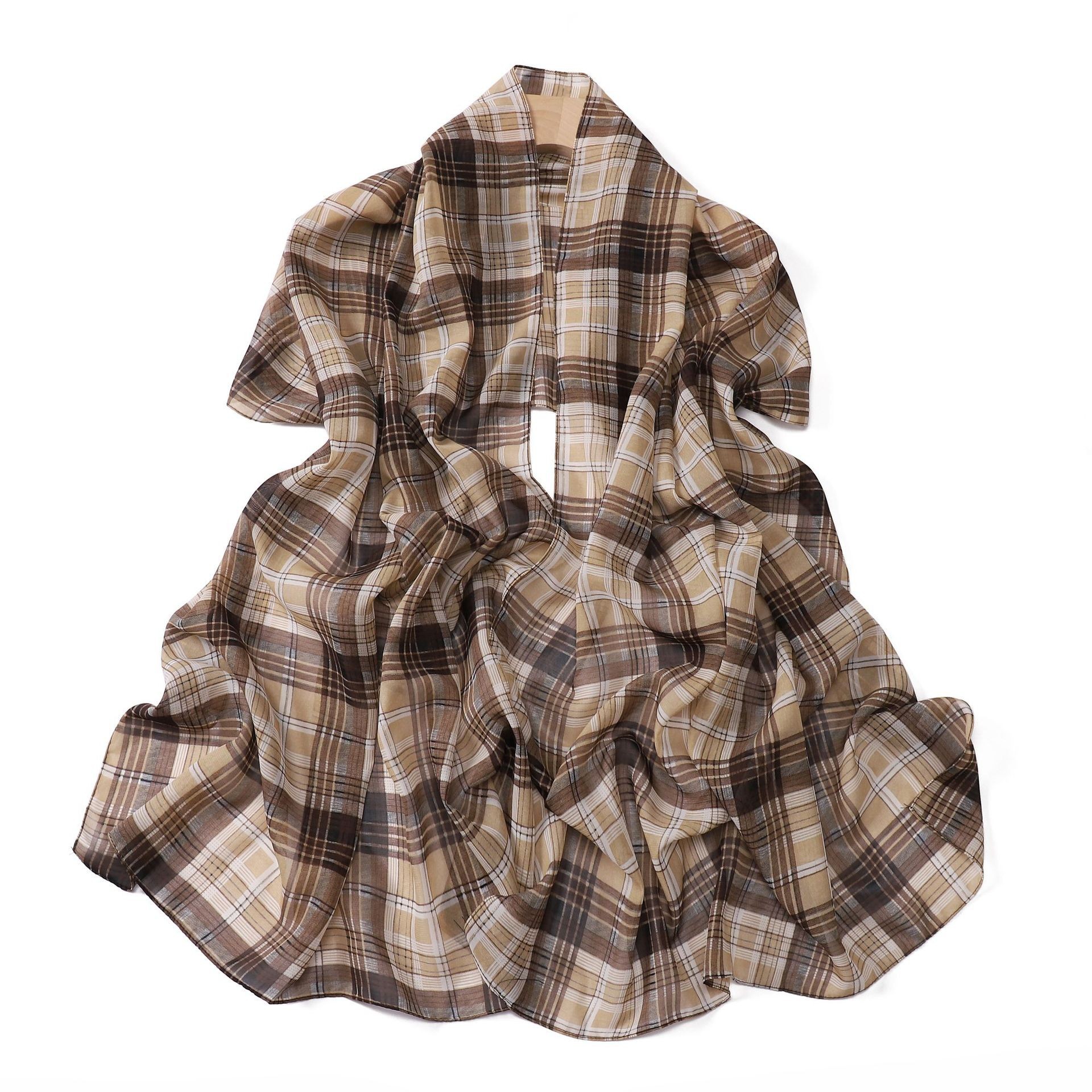 영국 격자 무늬 인쇄 스카프 격자 무늬 쉬폰 긴 스카프 스카프 헤드 스카프 고급 해변 스카프 목도리