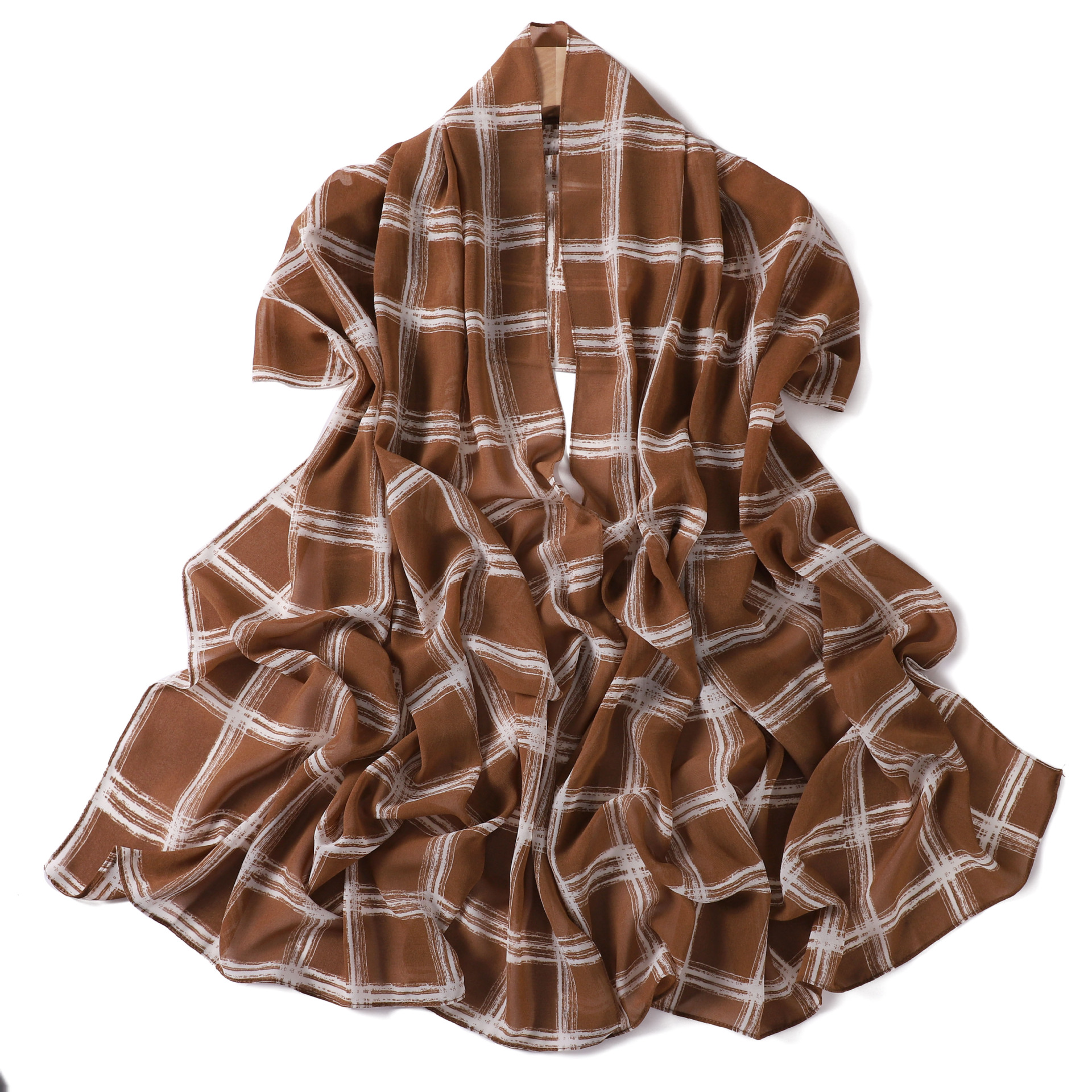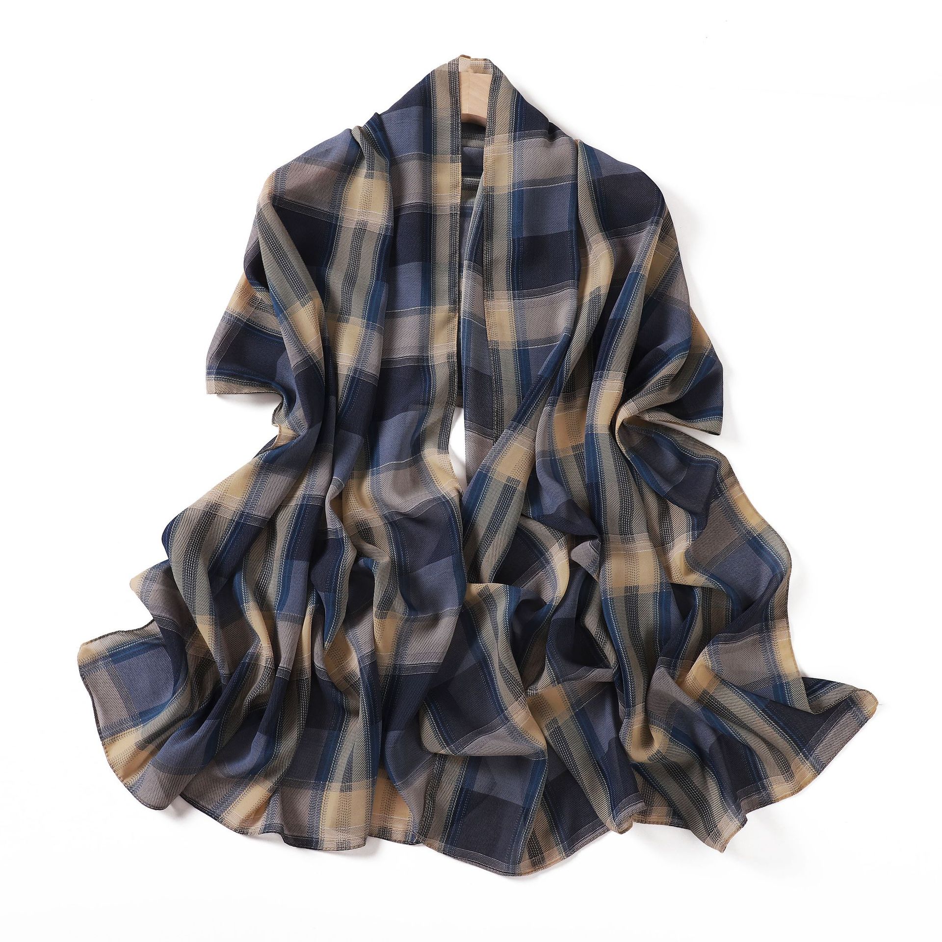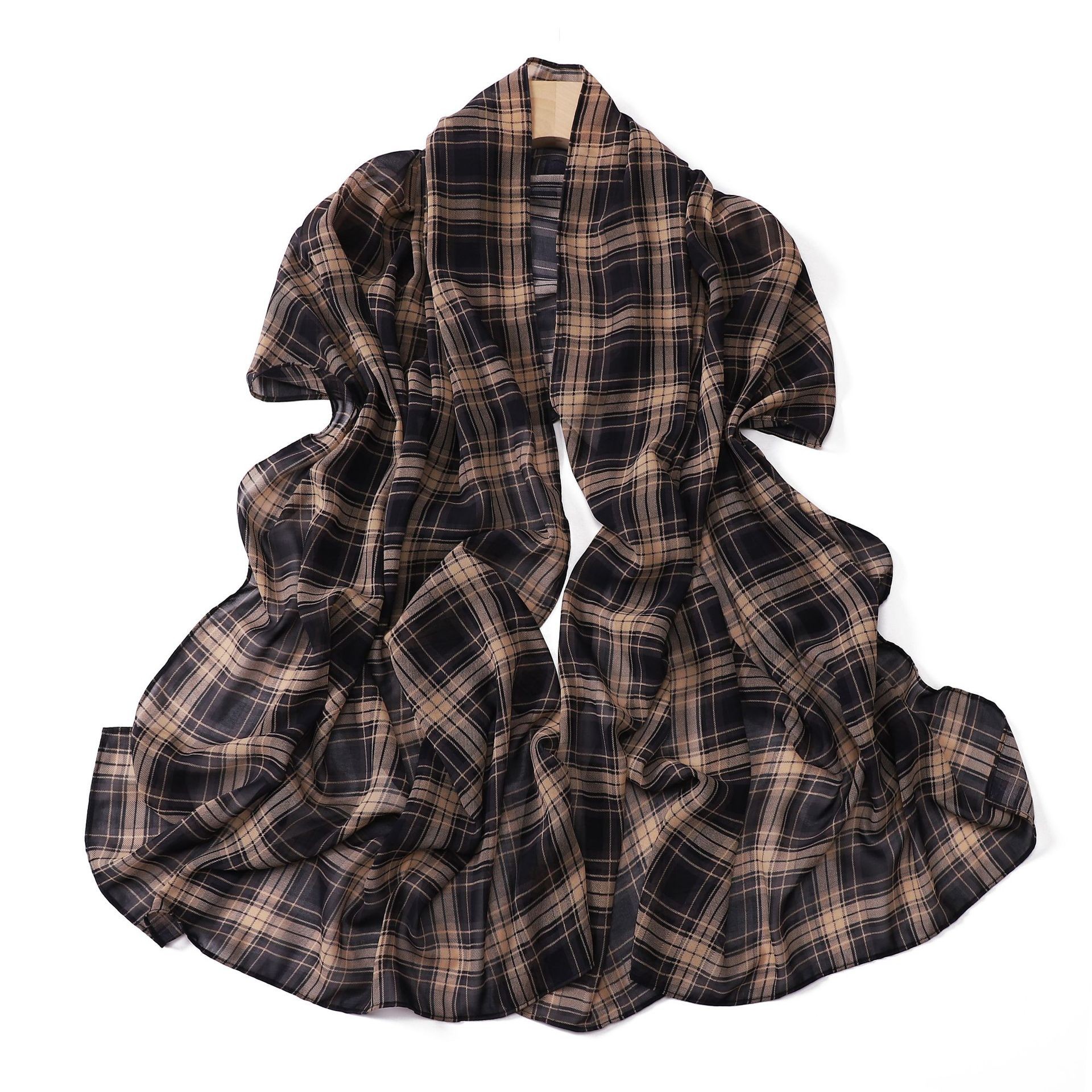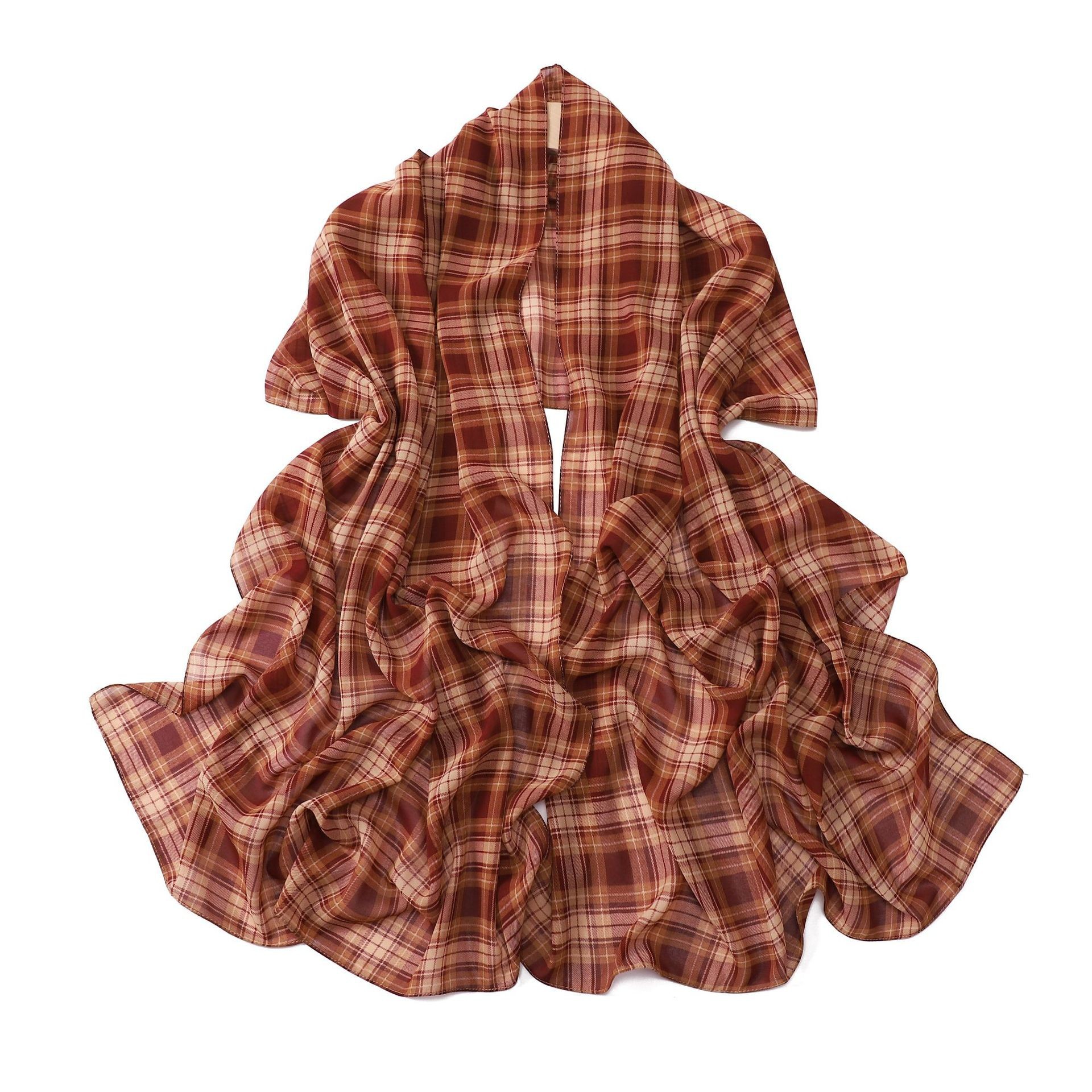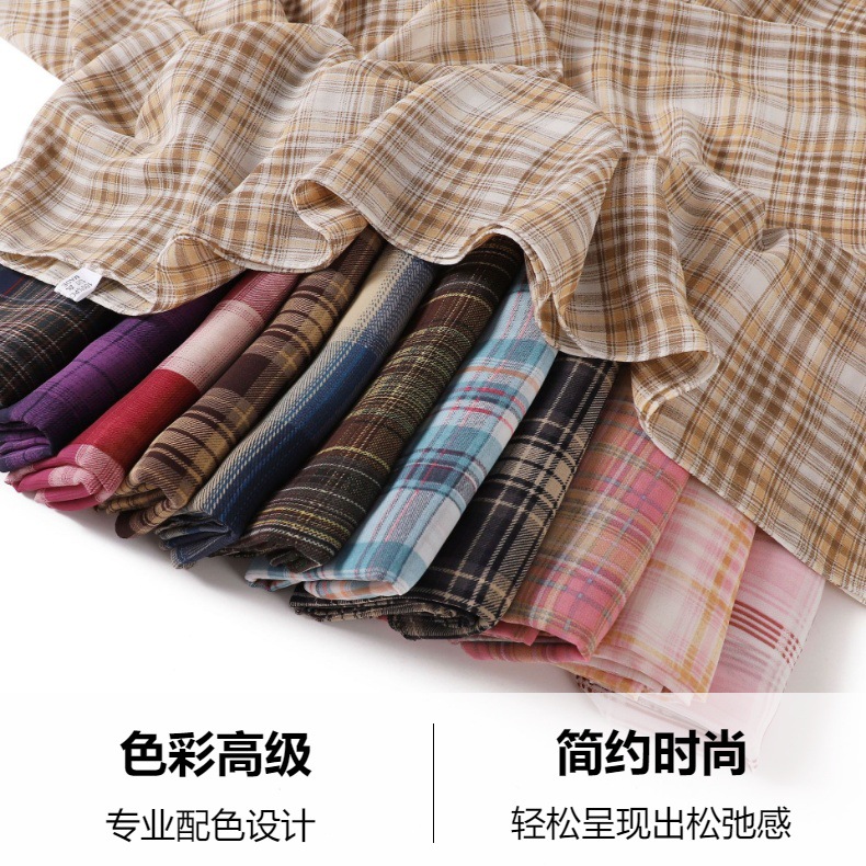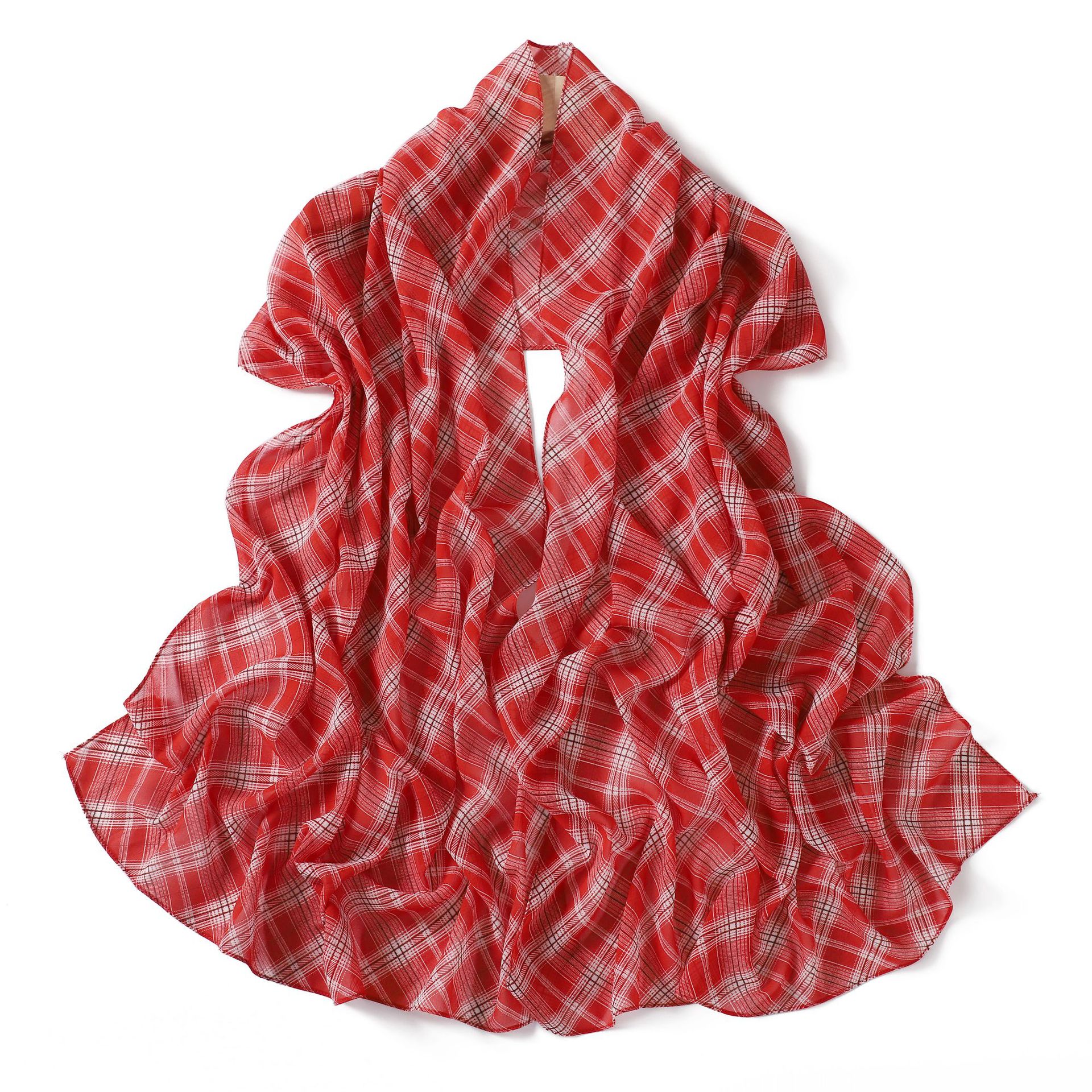 영국 격자 무늬 인쇄 스카프 격자 무늬 쉬폰 긴 스카프 스카프 헤드 스카프 고급 해변 스카프 목도리