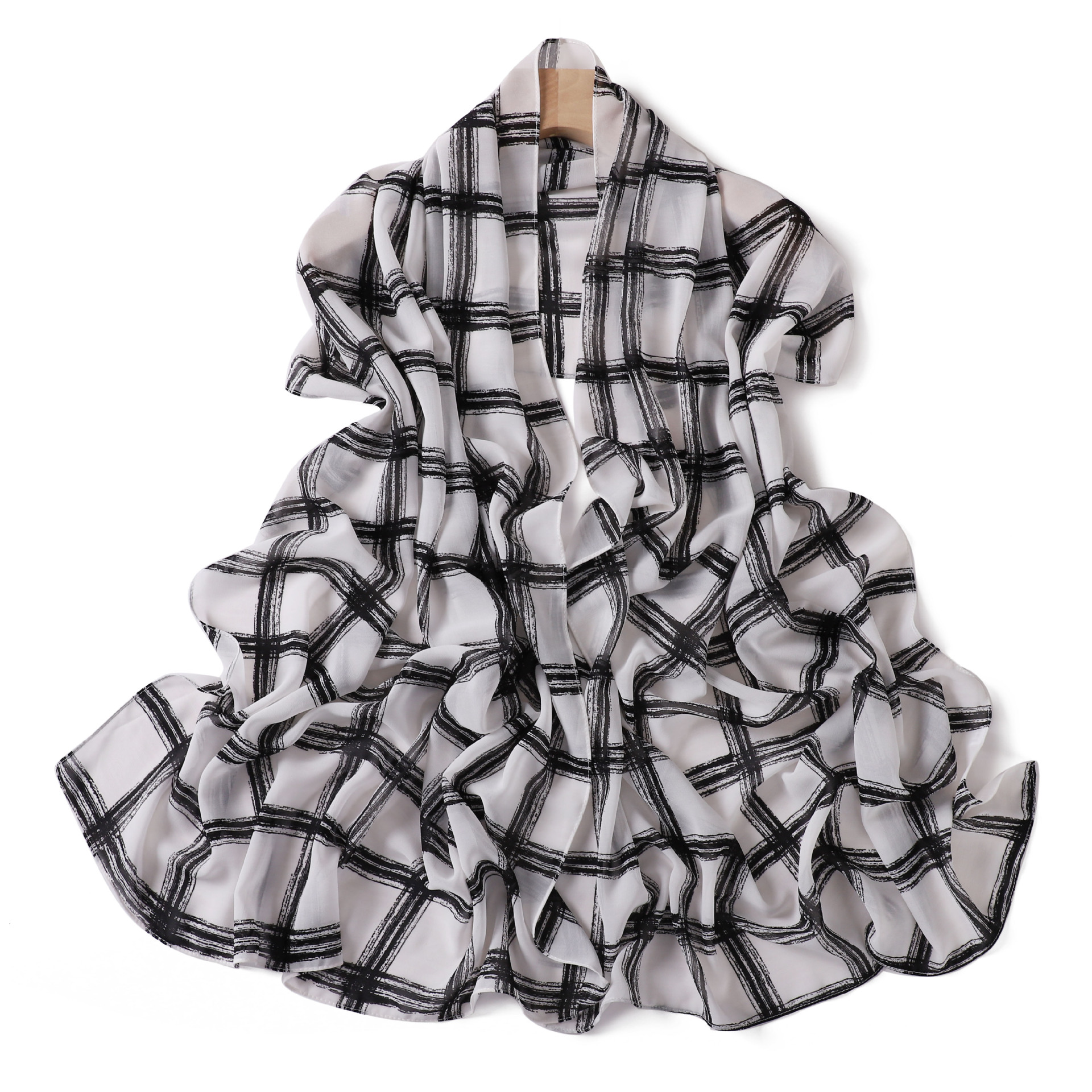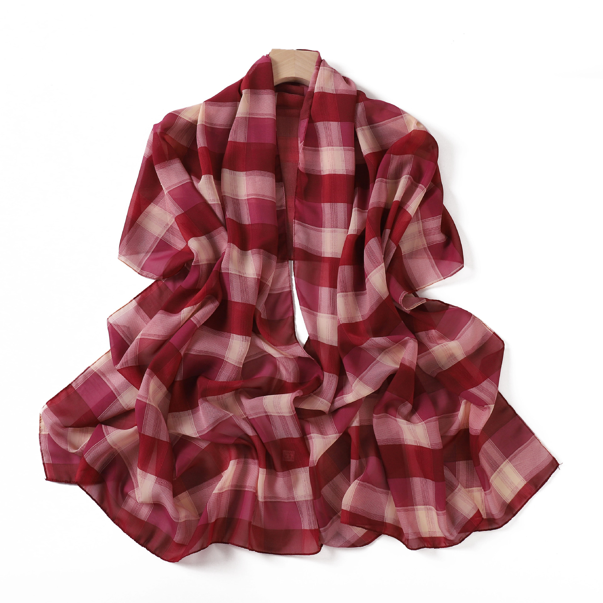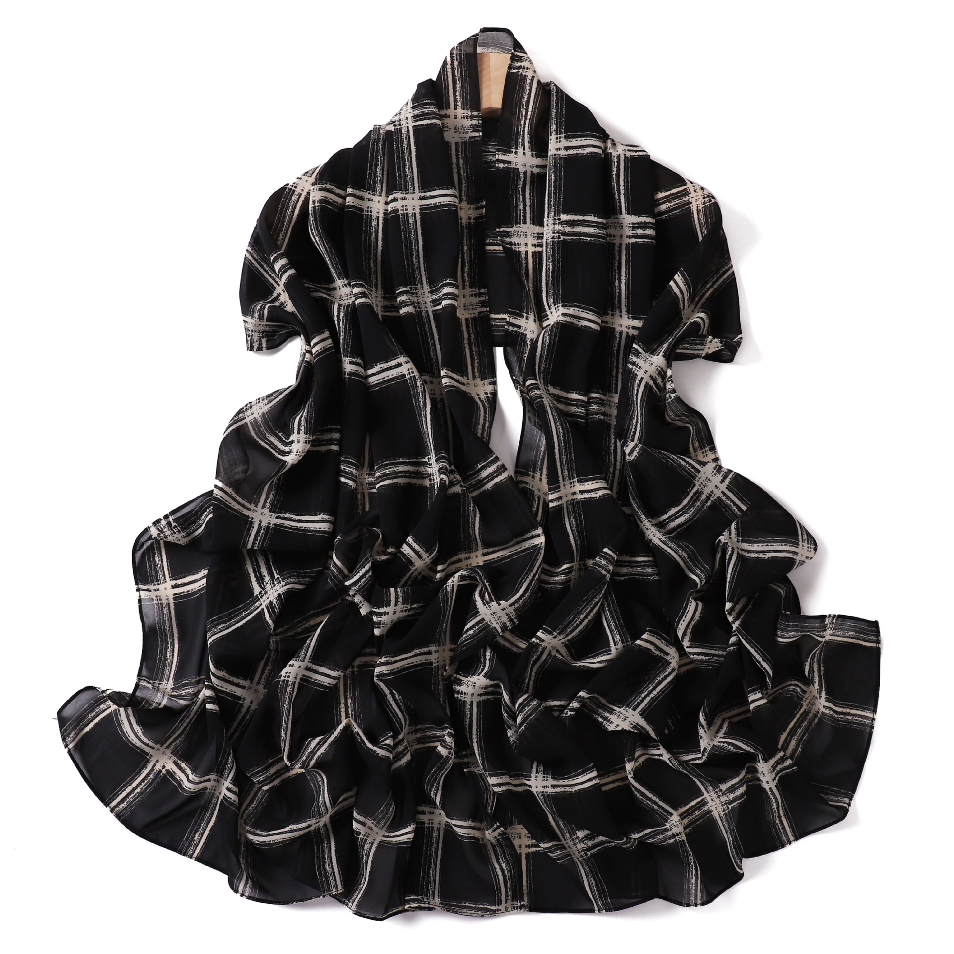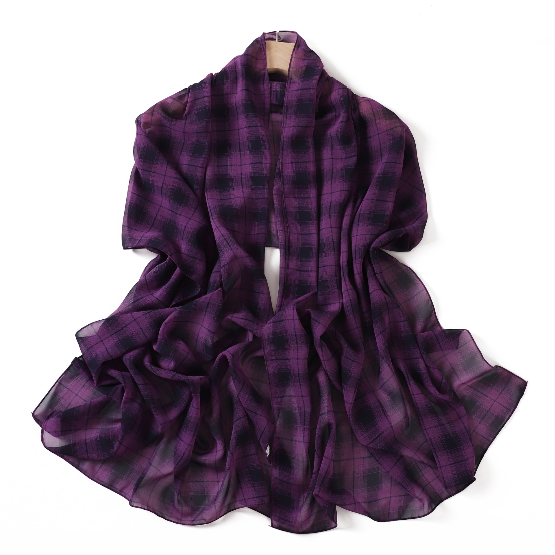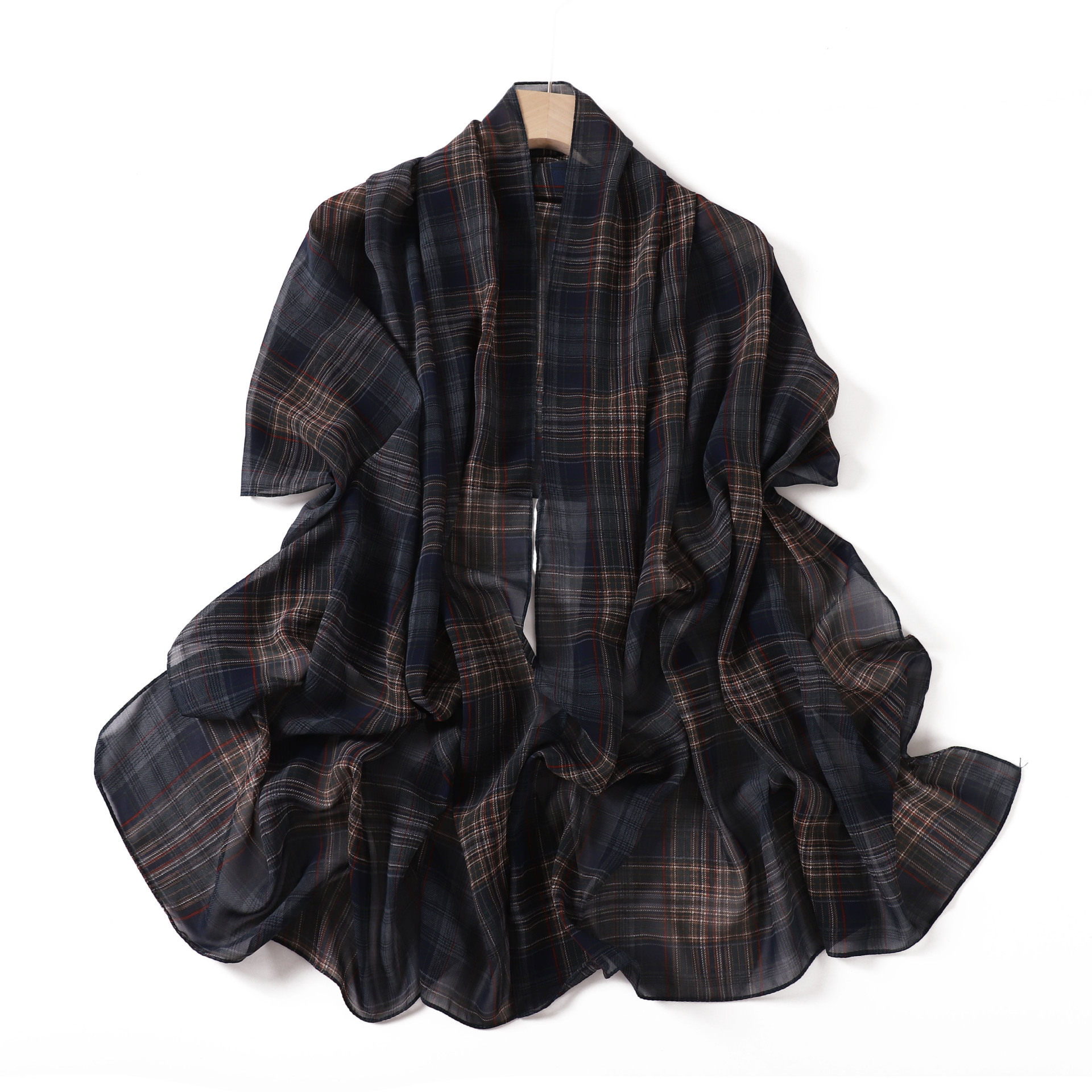 영국 격자 무늬 인쇄 스카프 격자 무늬 쉬폰 긴 스카프 스카프 헤드 스카프 고급 해변 스카프 목도리