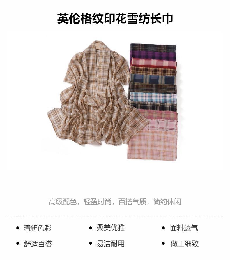 영국 격자 무늬 인쇄 스카프 격자 무늬 쉬폰 긴 스카프 스카프 헤드 스카프 고급 해변 스카프 목도리스토어 가기