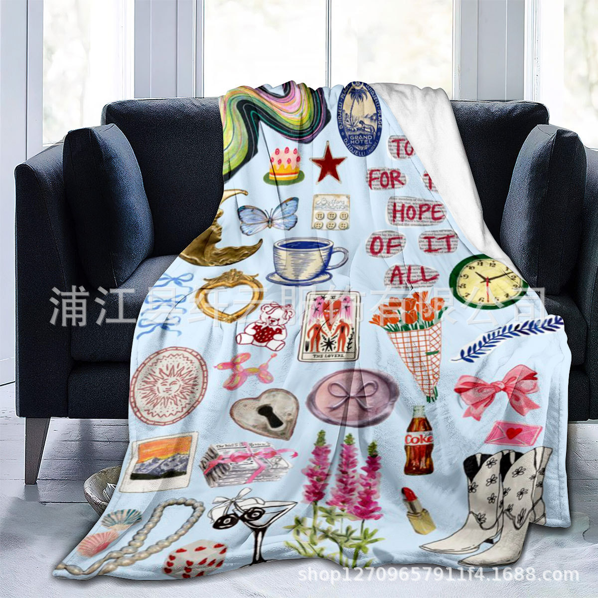 我司位于浙江义乌浦江县下方工业区。自有工厂,拥有数码打印机,转印机多台,可生产沙滩巾,挂毯,带帽毛毯等数码印花产品,接受来图,支持跨境电商上架,支持商标授权。欢迎广大客户上门洽谈。