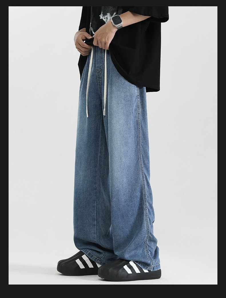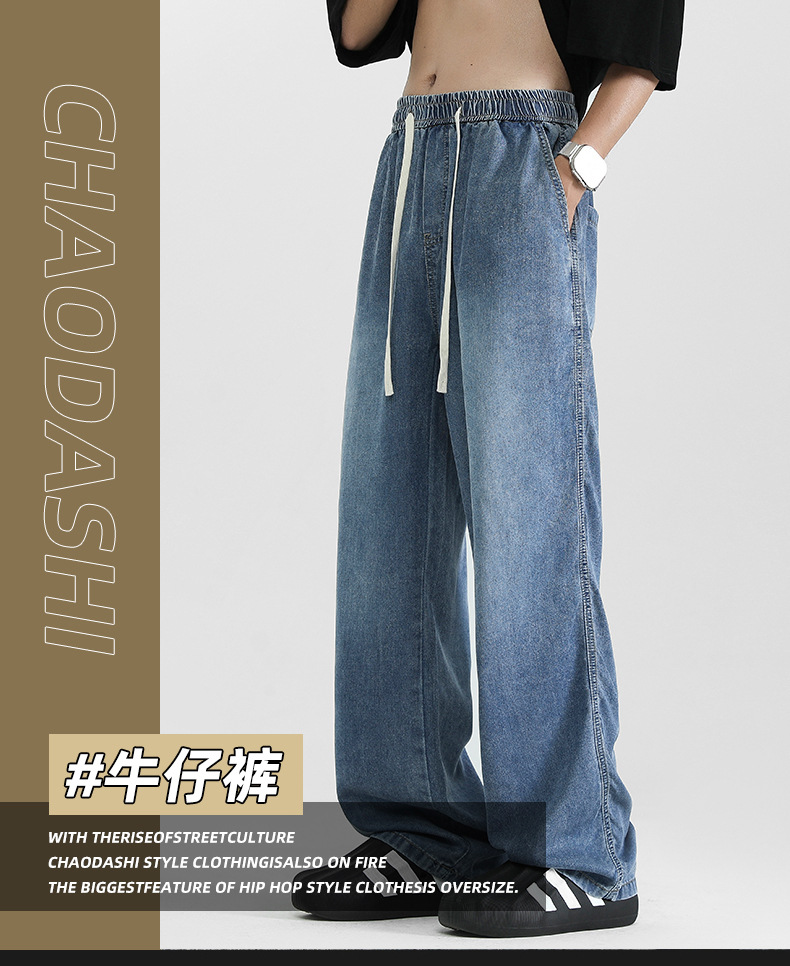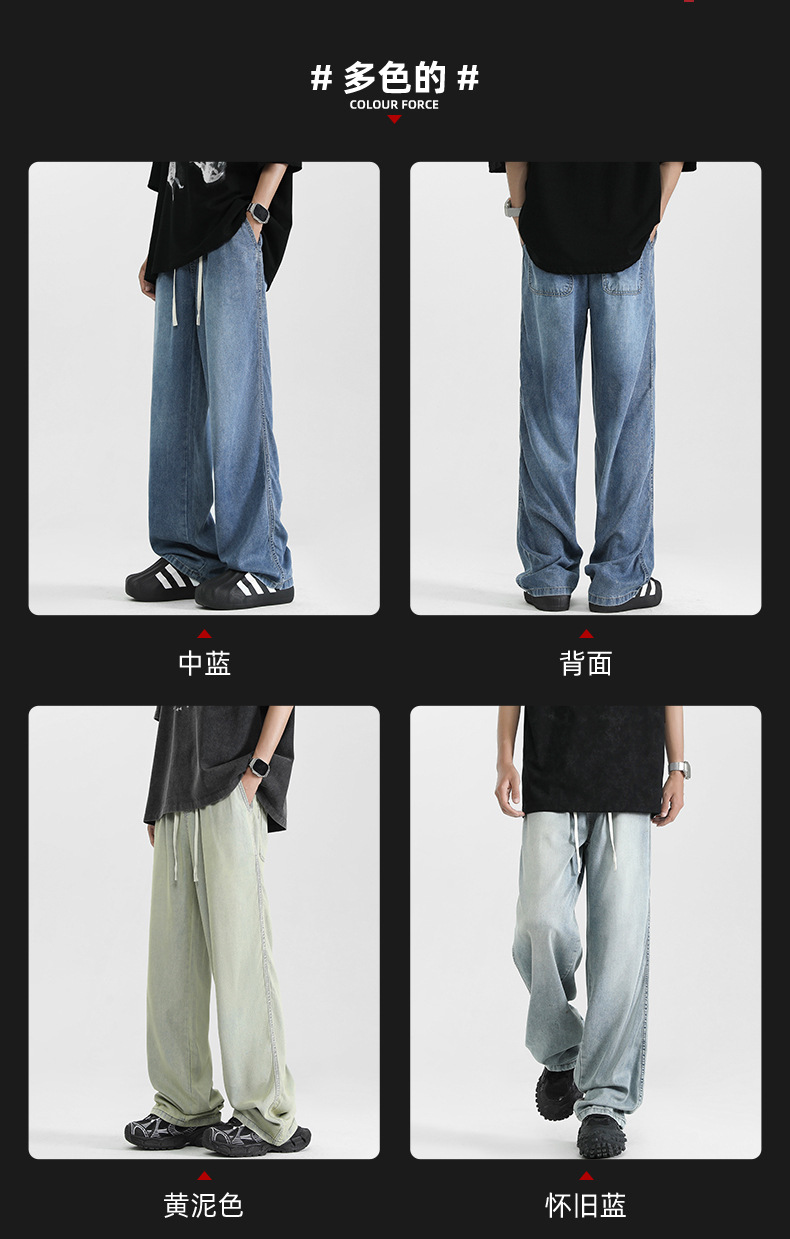 아메리칸 스타일 스트레이트 슬림 핏 옐로우 머드 컬러 마이크로 풀 청바지 남성용 워시 루즈 바이브 바지 하이 스트리트 여름 캐주얼 바지스토어 가기