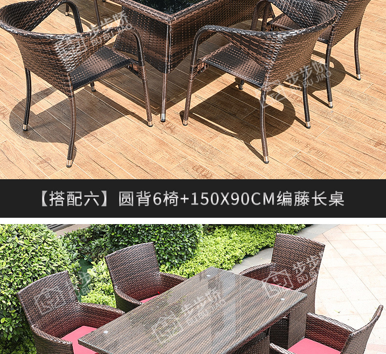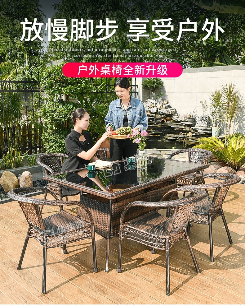 J & 야외 테이블 및 의자 코트야드 등나무 의자 발코니 코트야드 등나무 레저 가든 빌라 야외 야외 야외 야외 테라스 식사 테이블 롱스토어 가기