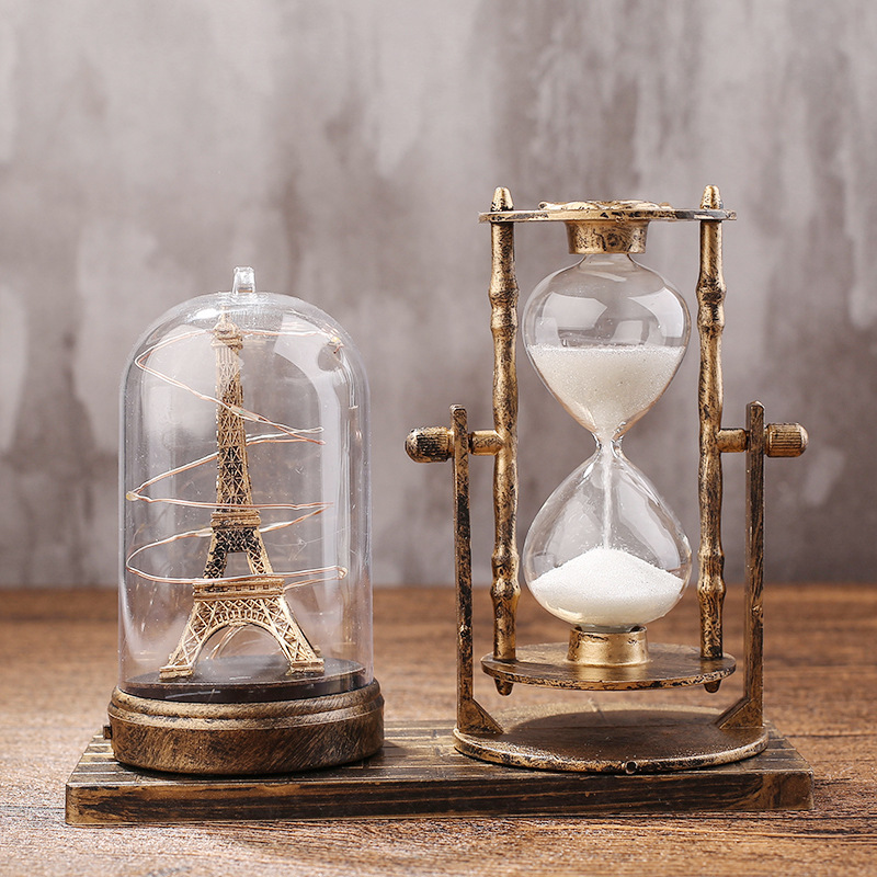 개인화 된 창조적 인 에펠 탑 모래 시계 사무실 바탕 화면 장식 홈 거실 와인 캐비닛 장식 학생 선물