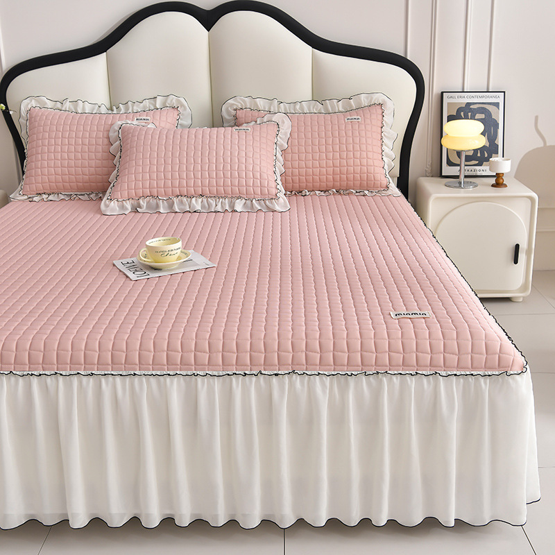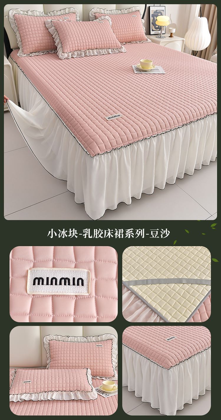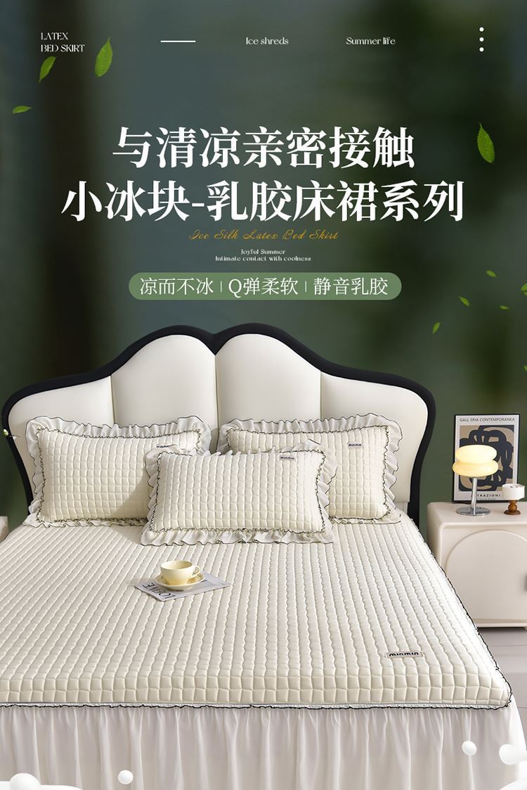 라텍스 아이스 실크 매트 2024 새로운 여름 침대 치마 3 피스 세트 하이 엔드 머신 세탁기 쿨 레이스 에어컨 매트스토어 가기