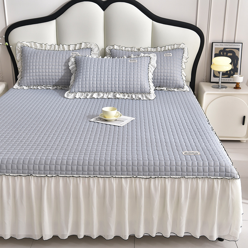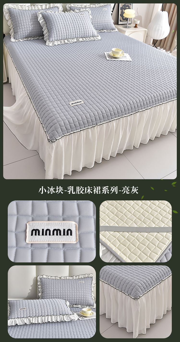 • 시원한 느낌 작은 얼음 라텍스 매트 침대 스커트-그레이