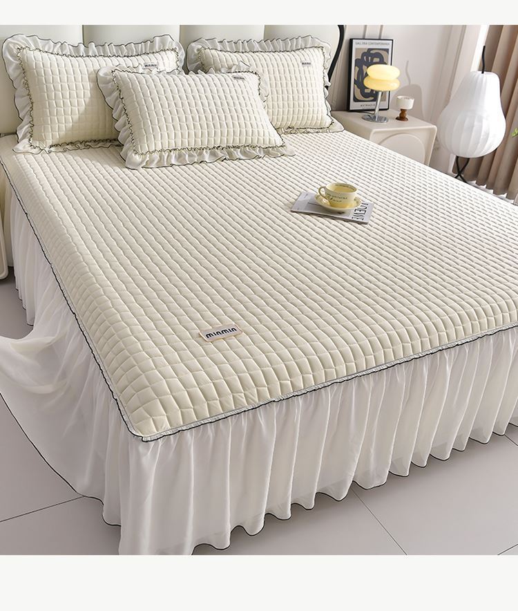 • 시원한 느낌 작은 얼음 라텍스 매트 침대 스커트-아이보리 화이트
