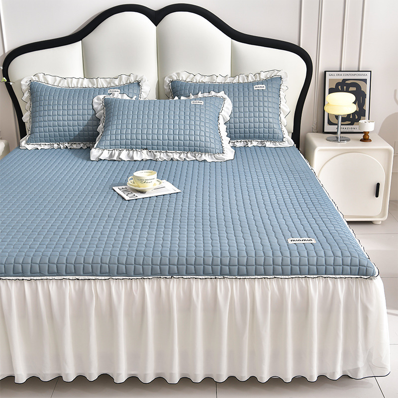 • 시원한 느낌 작은 얼음 라텍스 매트 침대 스커트-사파이어 블루