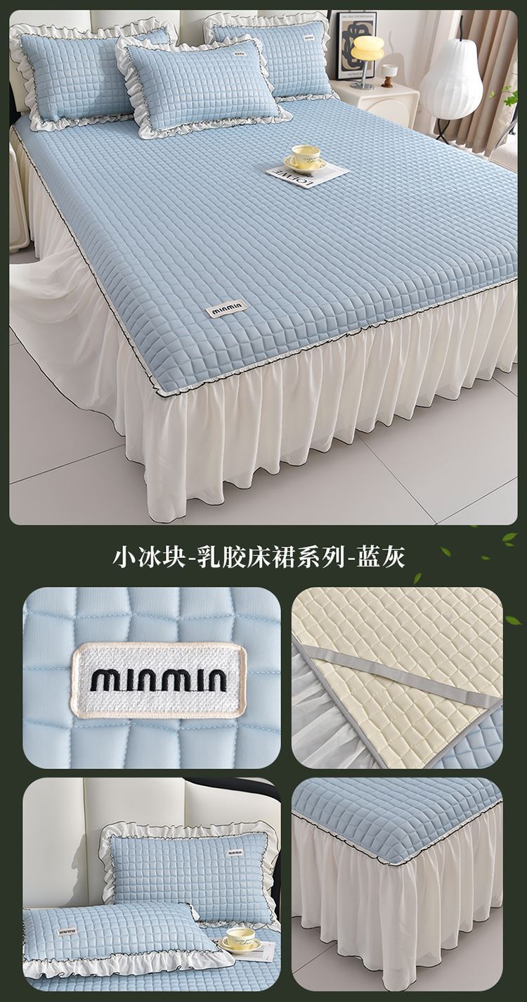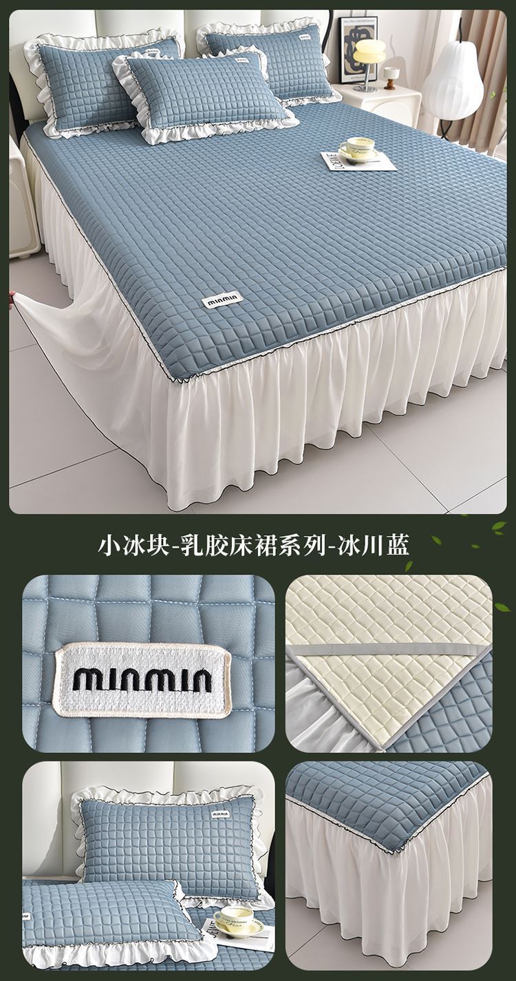 • 시원한 느낌 작은 얼음 라텍스 매트 침대 스커트-빙하 블루