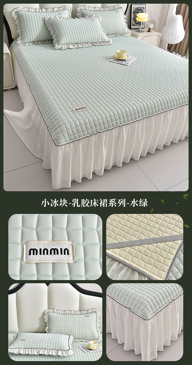 • 시원한 느낌 작은 얼음 라텍스 매트 침대 치마-물 녹색