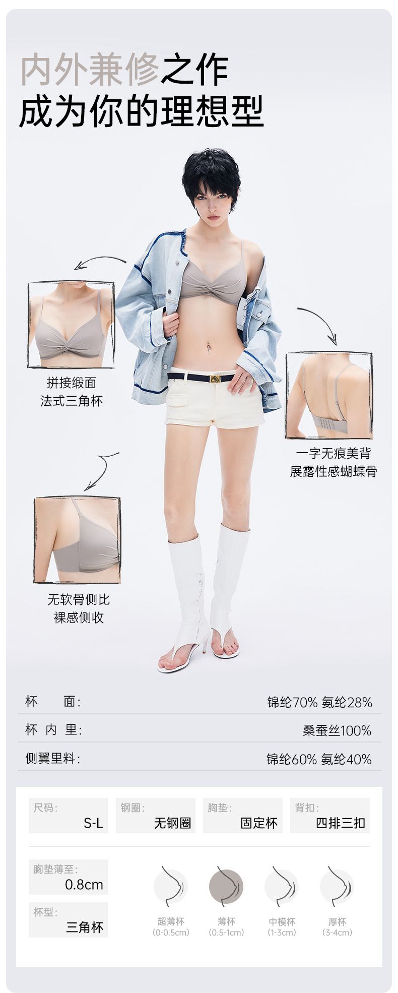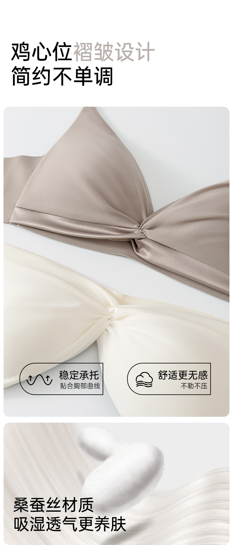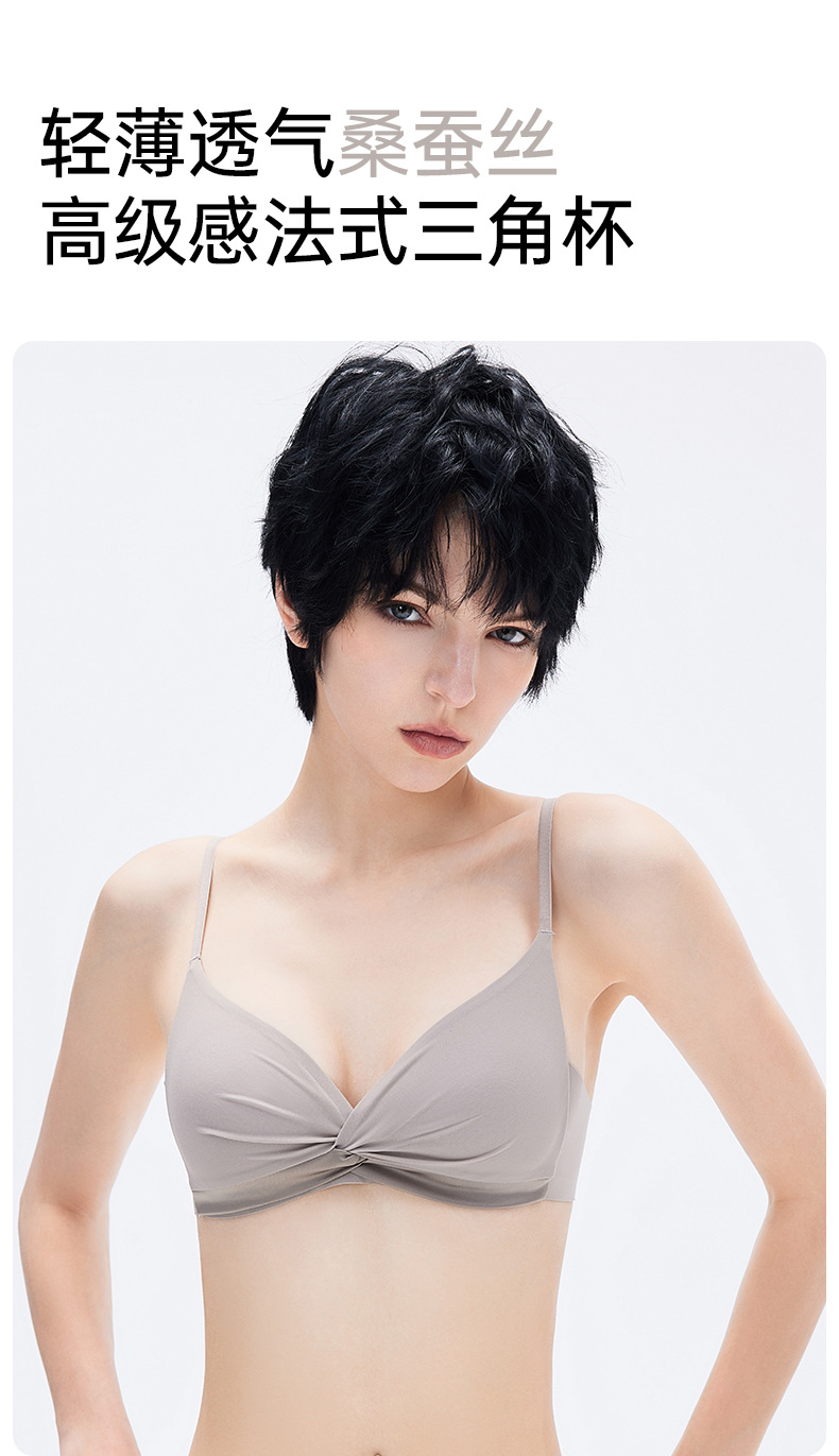 100% 뽕나무 실크 여성용 프렌치 스타일 삼각 컵 브라, 새틴처럼 부드럽고 와이어 없이 입체적으로 모아주는 얇고 통기성 좋은 브라