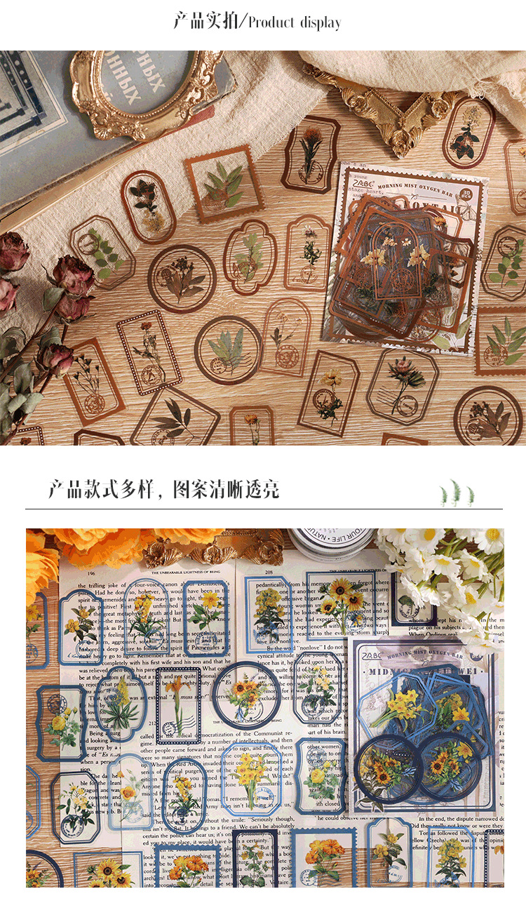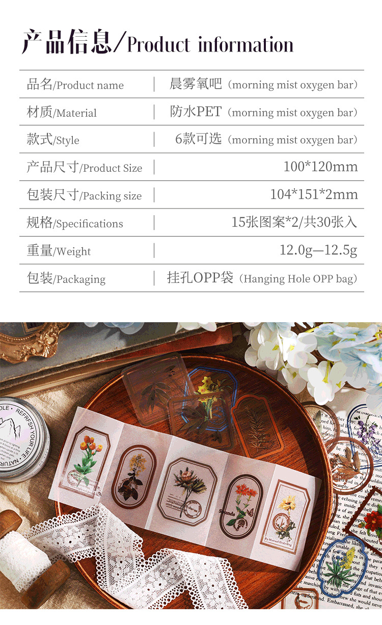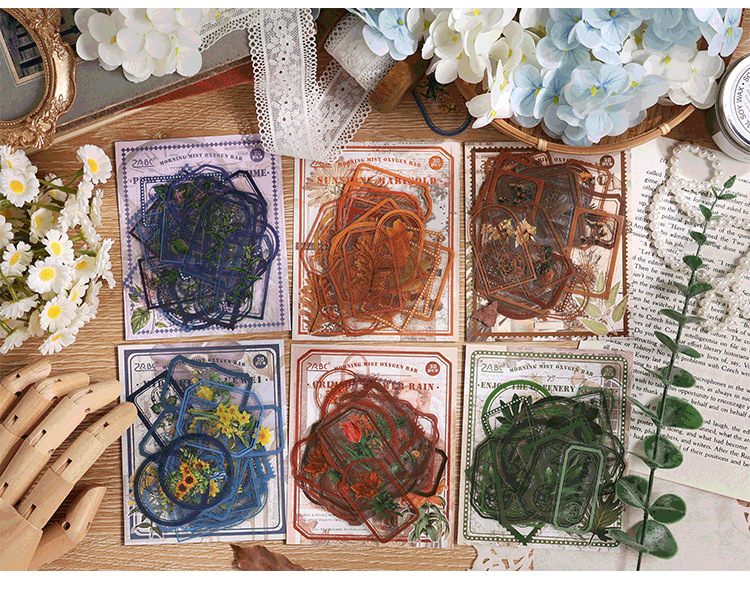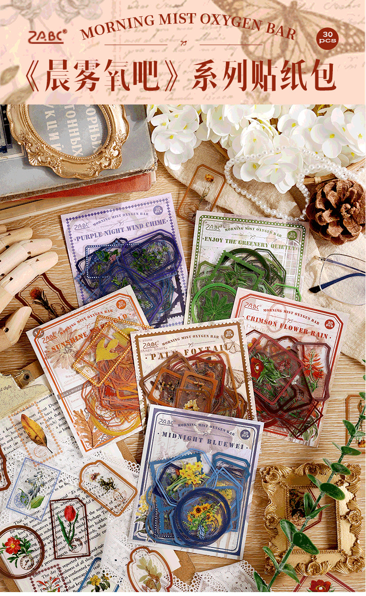 국경 간 ZABC 아침 안개 산소 바 시리즈 스티커 손 계정 투명 장식 콜라주 유럽 복고풍 꽃 DIY 스티커 6스토어 가기