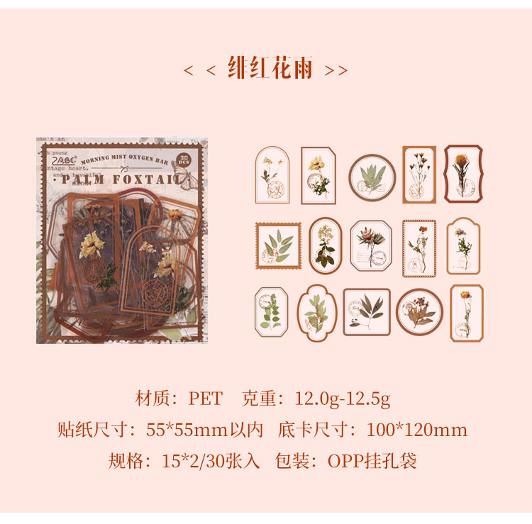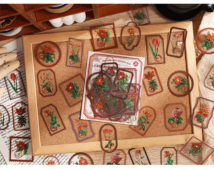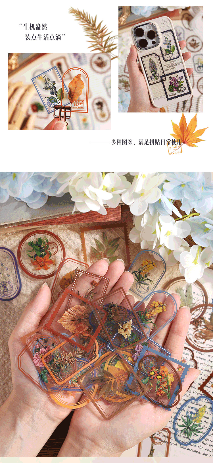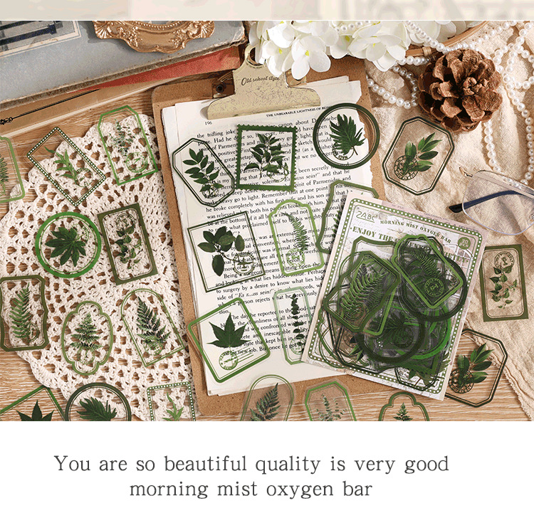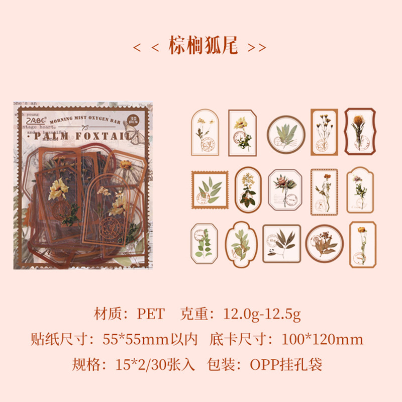 국경 간 ZABC 아침 안개 산소 바 시리즈 스티커 손 계정 투명 장식 콜라주 유럽 복고풍 꽃 DIY 스티커 6스토어 가기