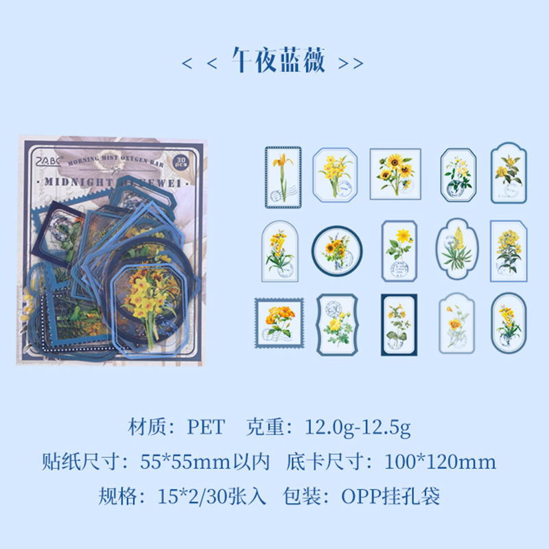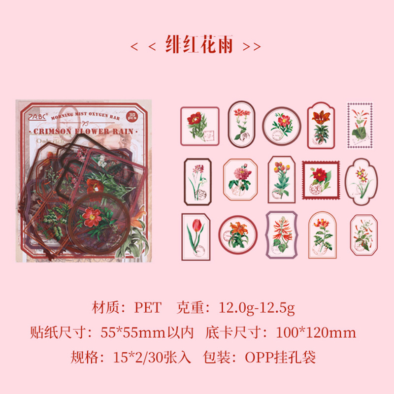 국경 간 ZABC 아침 안개 산소 바 시리즈 스티커 손 계정 투명 장식 콜라주 유럽 복고풍 꽃 DIY 스티커 6