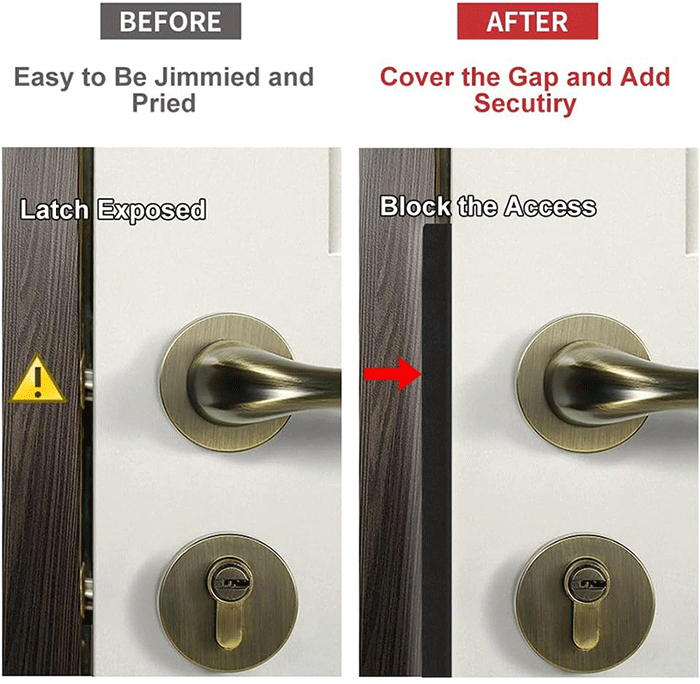 • 安装在门的边缘,以覆盖门缝并阻止门闩的进入。
