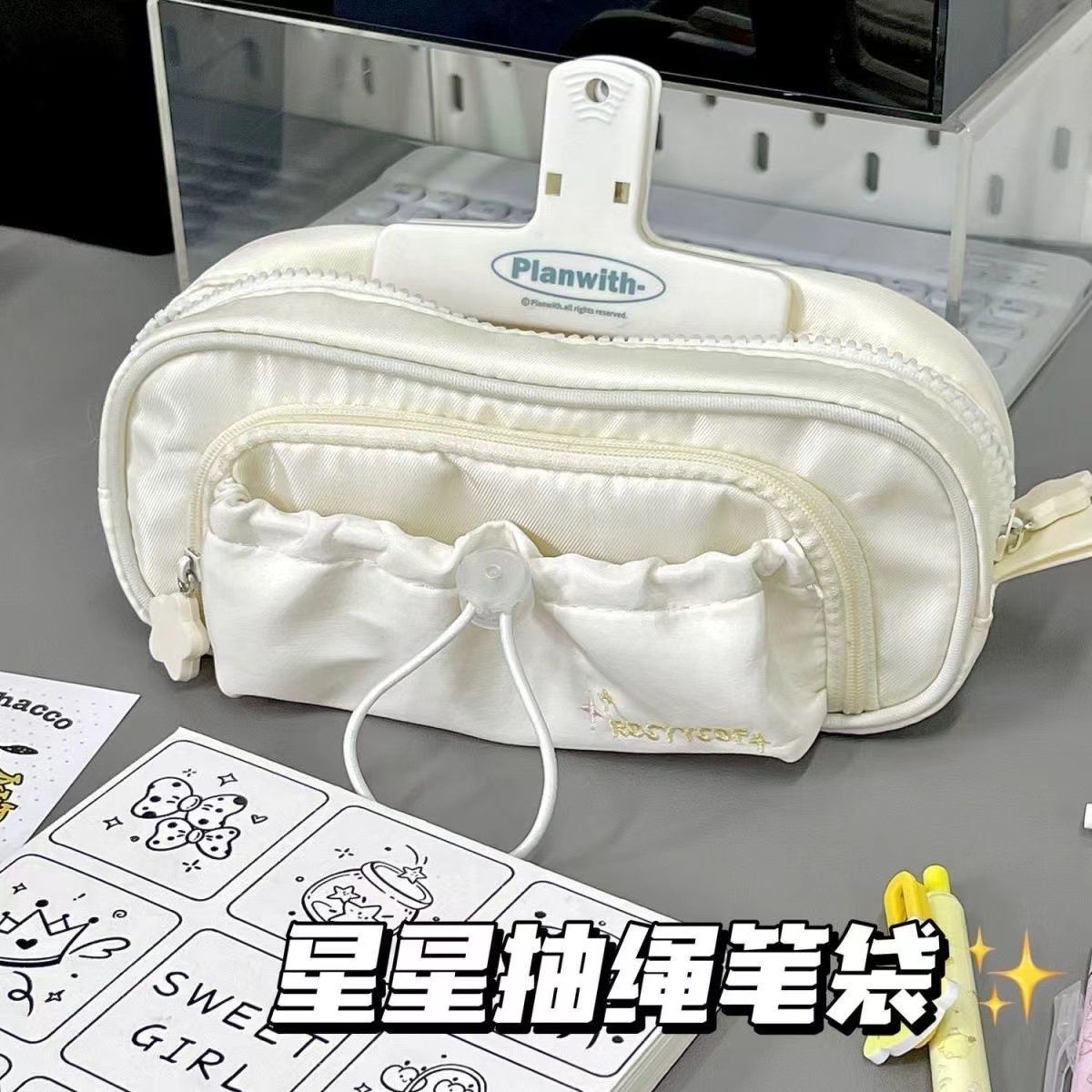 • 스타 드로스트링 필통 화이트 + 화이트 마그네틱 클립