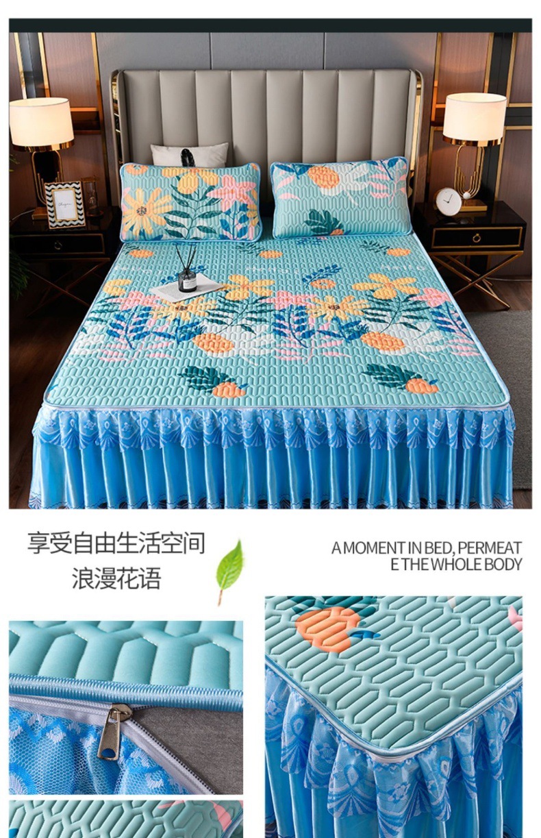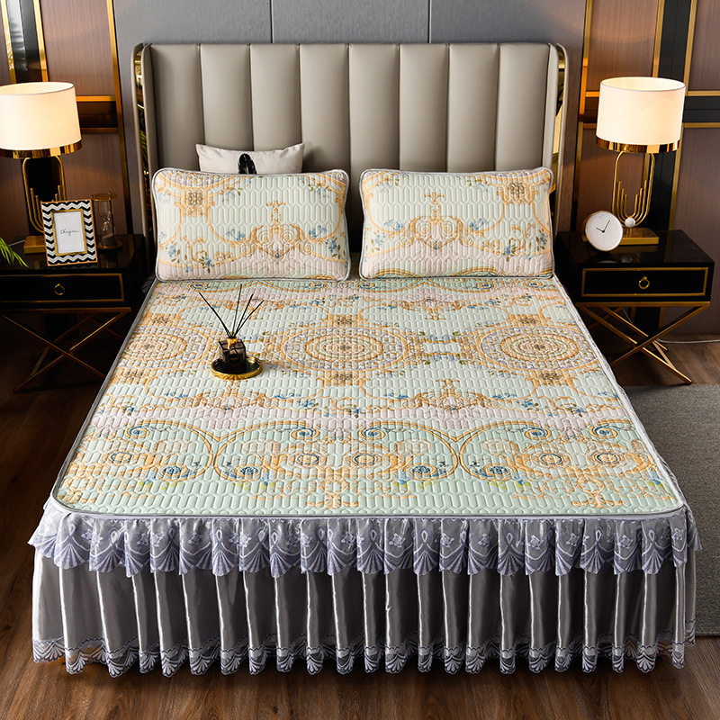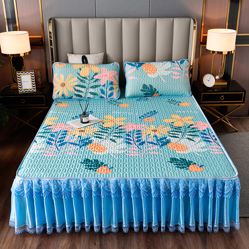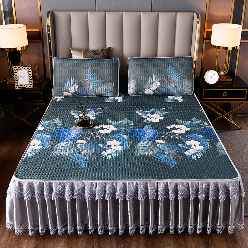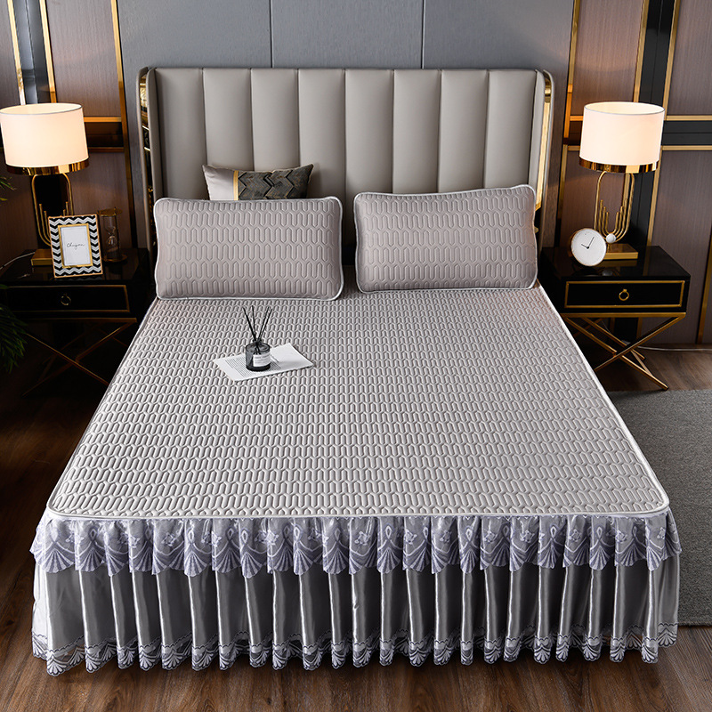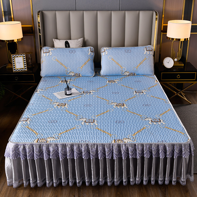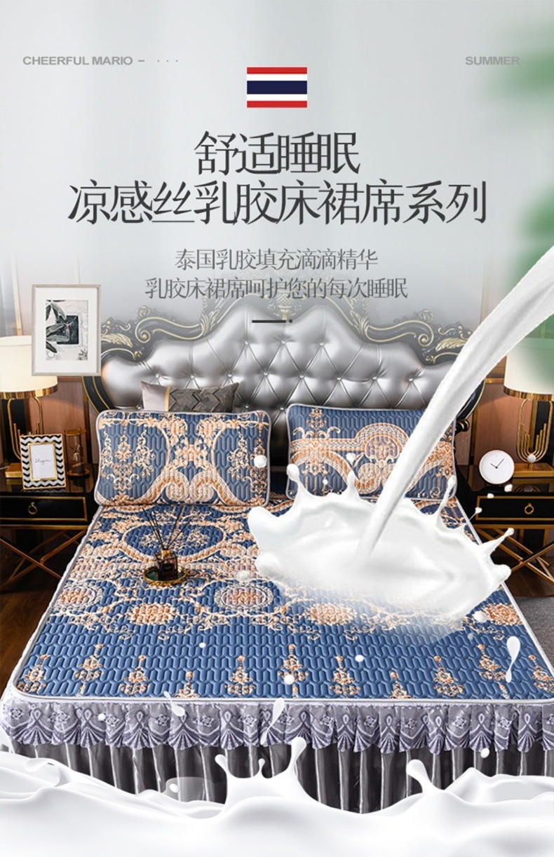 라텍스 아이스 실크 매트 3 피스 세트 여름 고급 침대 스커트 머신 세탁기 이동식 여름 미끄럼 방지 에어컨 소프트 매트