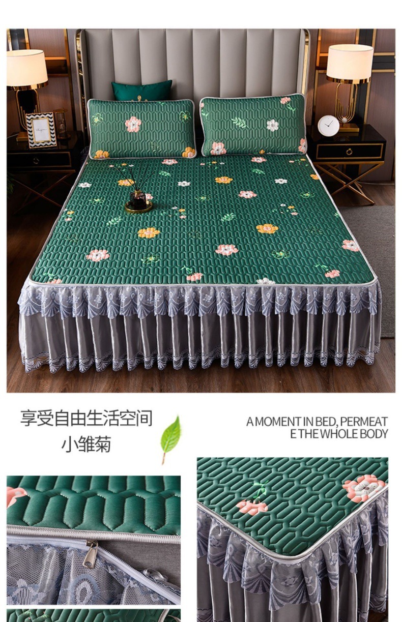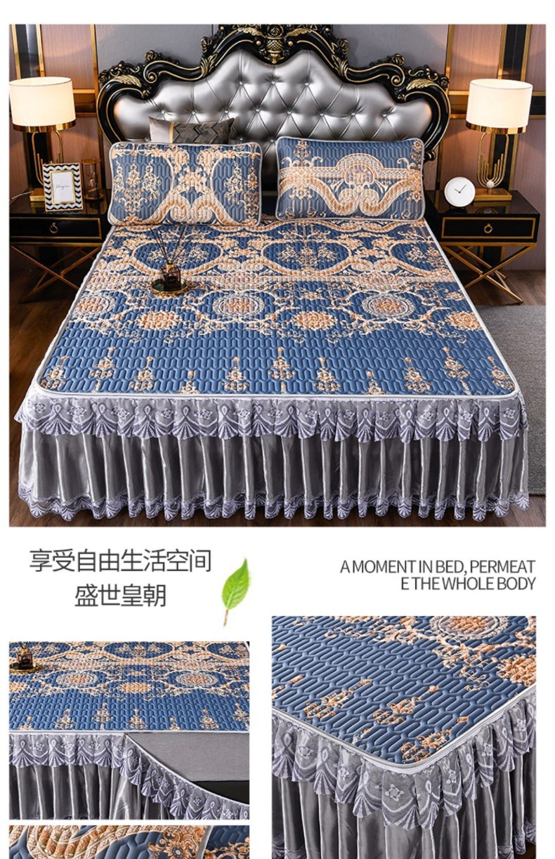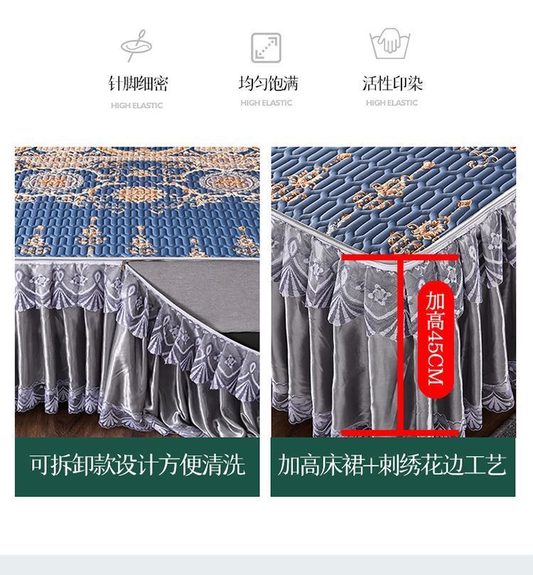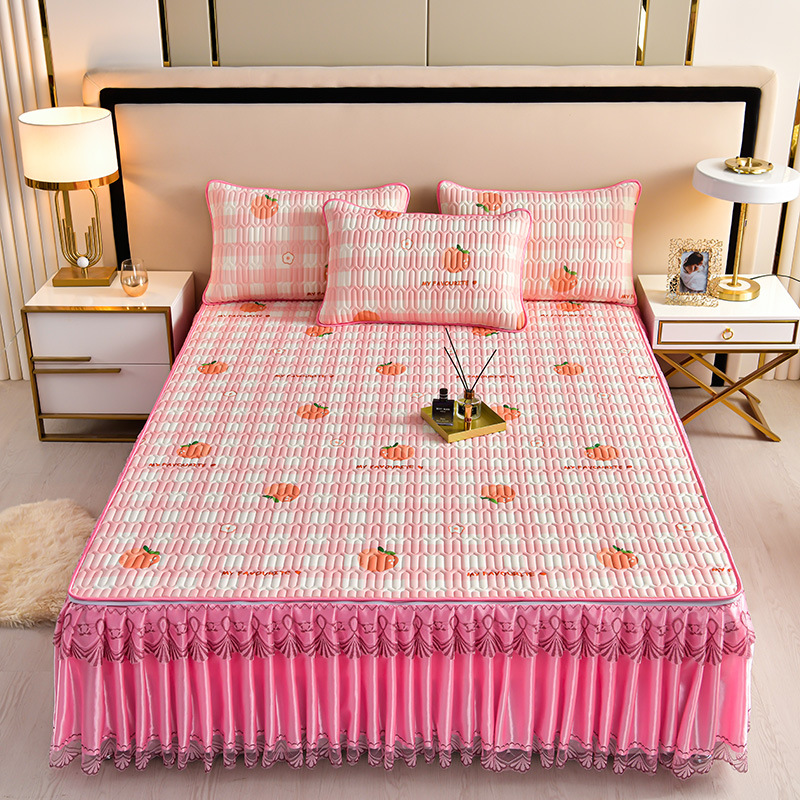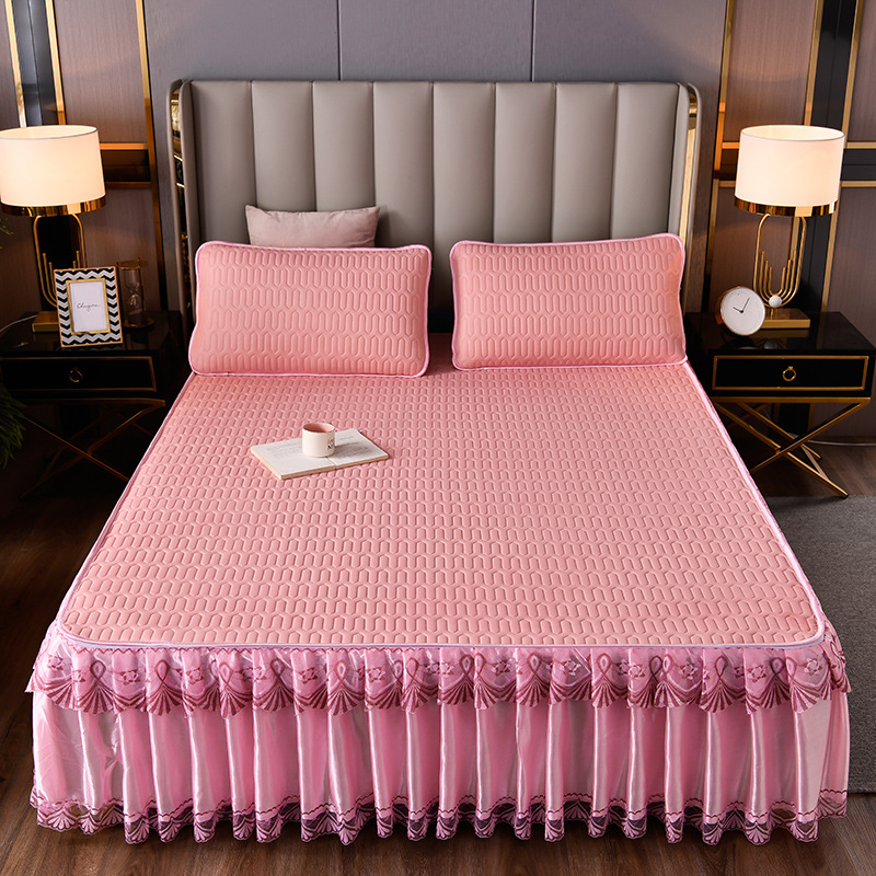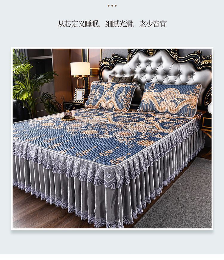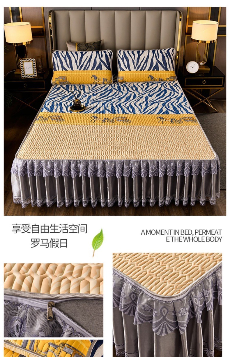 라텍스 아이스 실크 매트 3 피스 세트 여름 고급 침대 스커트 머신 세탁기 이동식 여름 미끄럼 방지 에어컨 소프트 매트