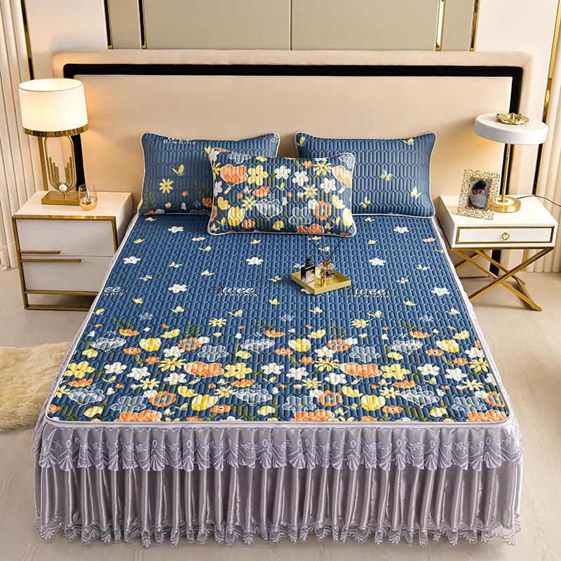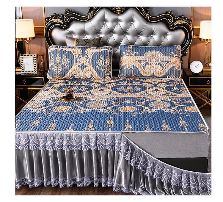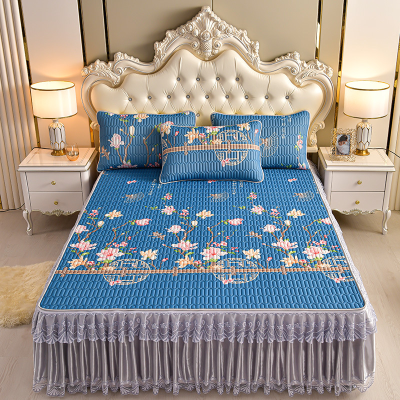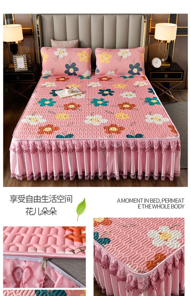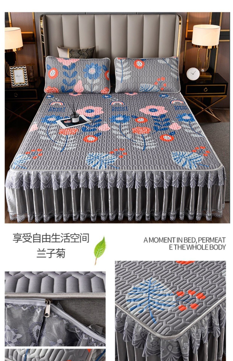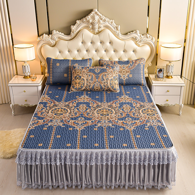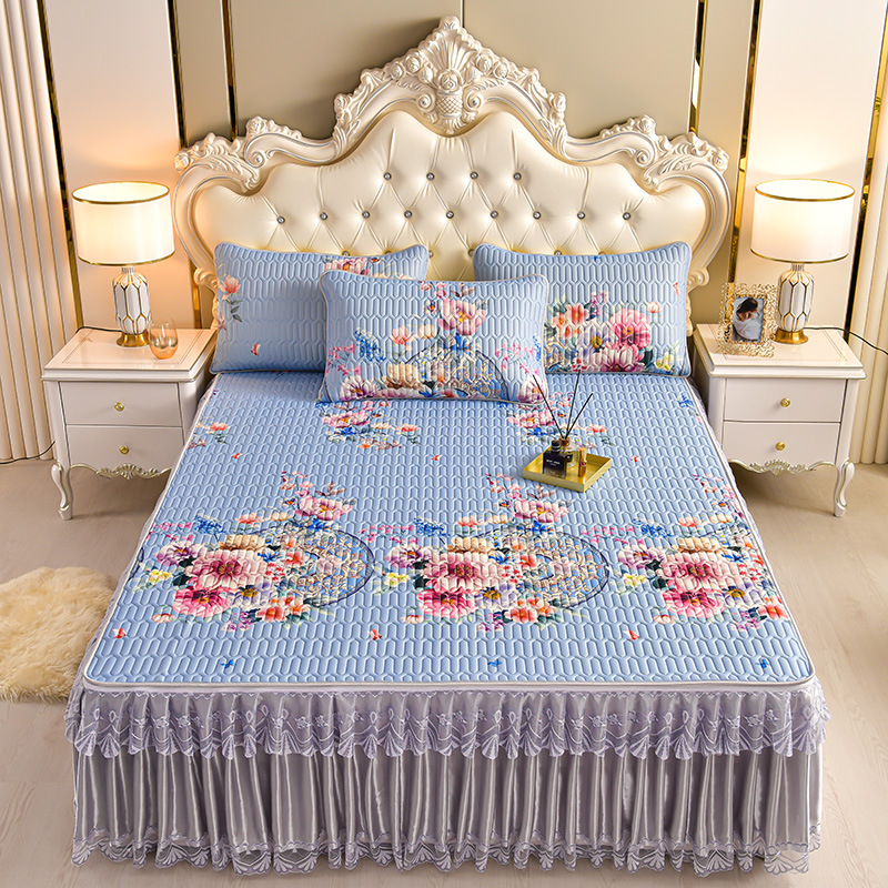 라텍스 아이스 실크 매트 3 피스 세트 여름 고급 침대 스커트 머신 세탁기 이동식 여름 미끄럼 방지 에어컨 소프트 매트