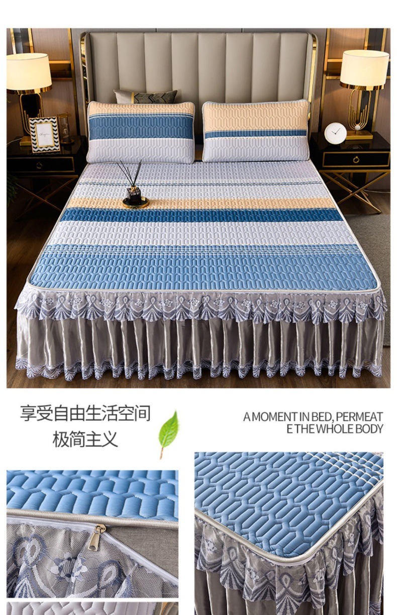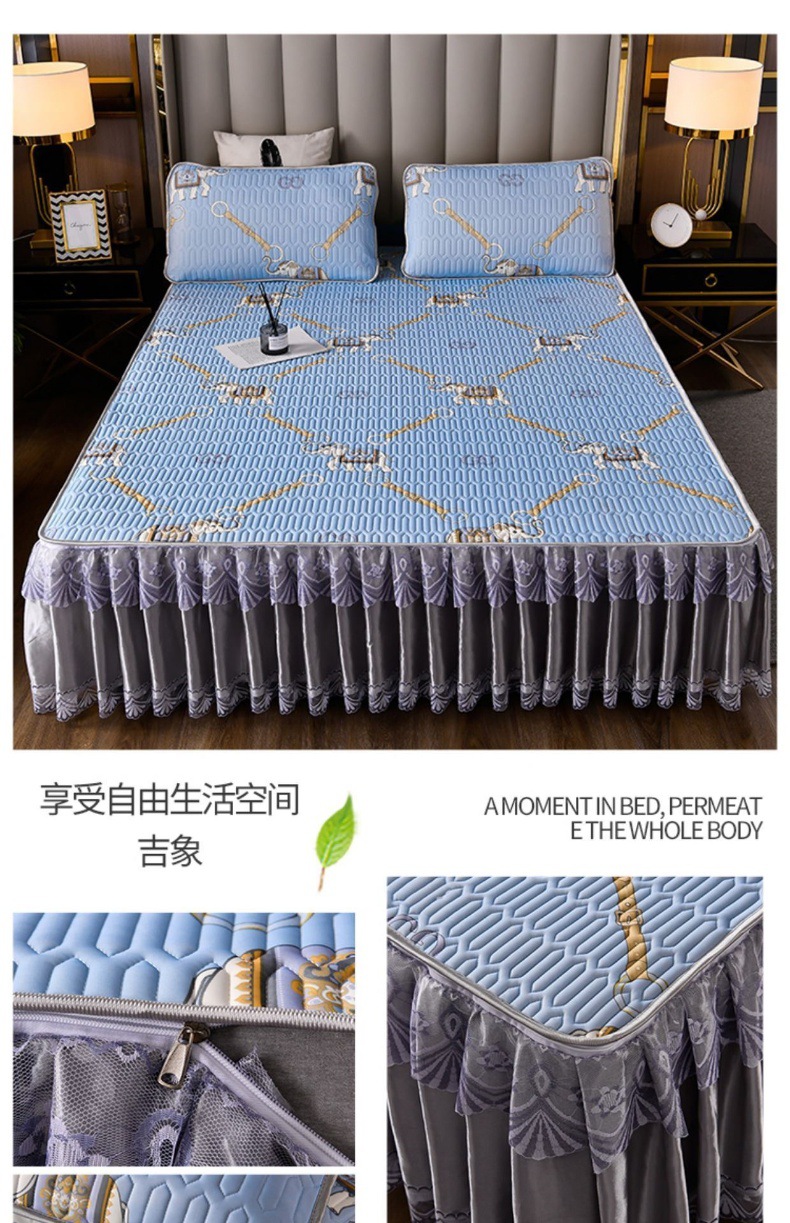 라텍스 아이스 실크 매트 3 피스 세트 여름 고급 침대 스커트 머신 세탁기 이동식 여름 미끄럼 방지 에어컨 소프트 매트스토어 가기