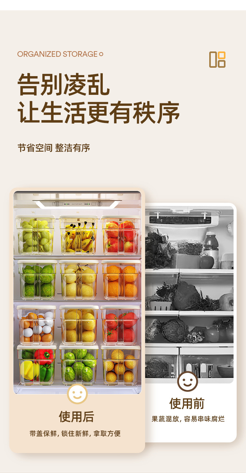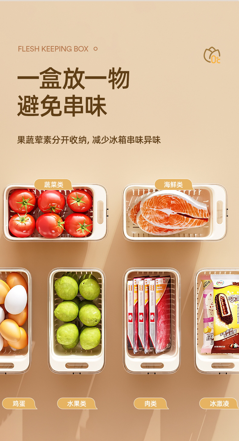 식품 등급 신선한 보관 상자 밀봉 계란 과일 및 야채 식품 다기능 냉동 저장 배수 냉장고 저장 상자스토어 가기