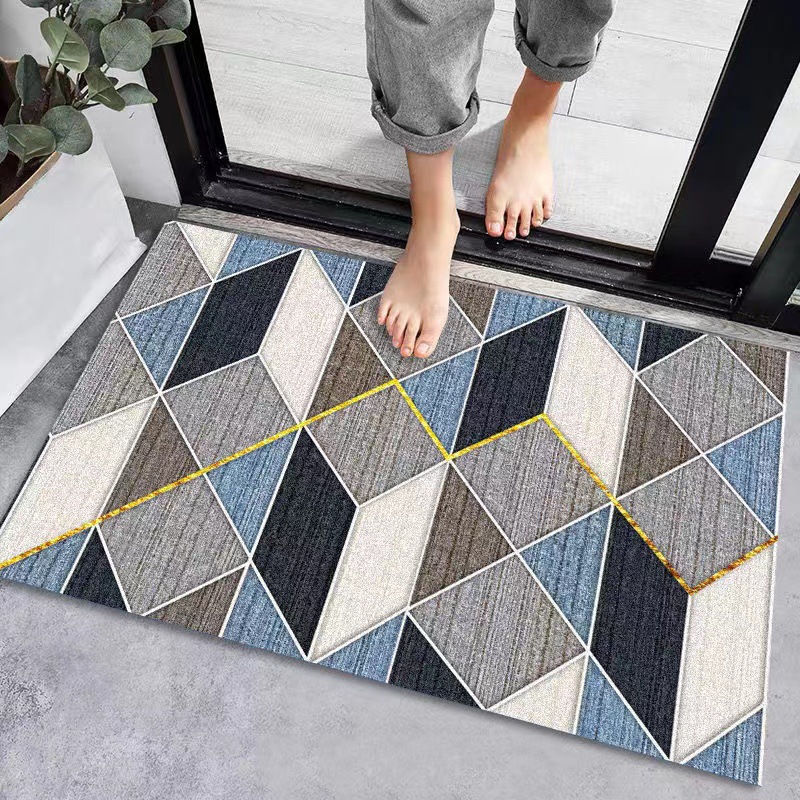 기하학적 디자인 현관문 매트, 출입구 카펫, 주방용 커팅 가능 매트, 미끄럼 방지 고급 크리스탈 벨벳스토어 가기