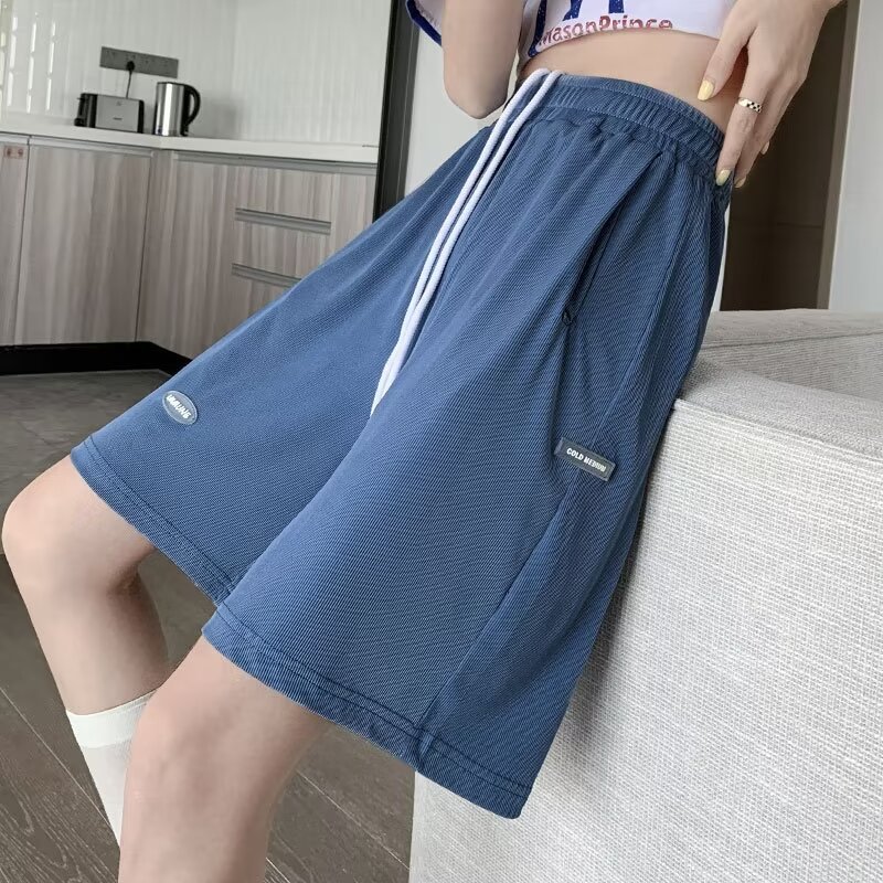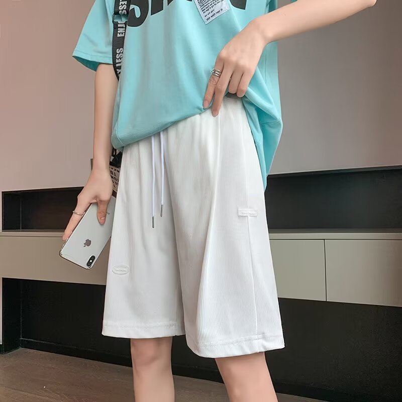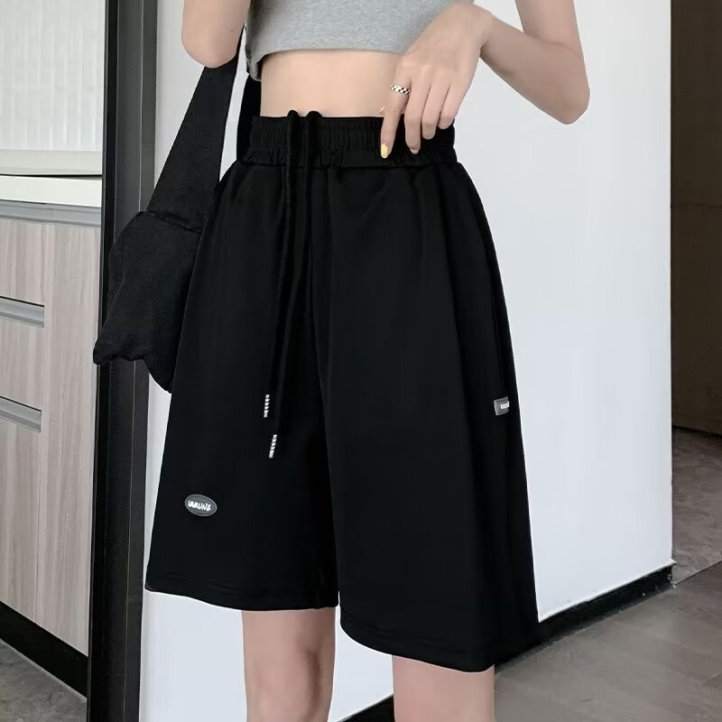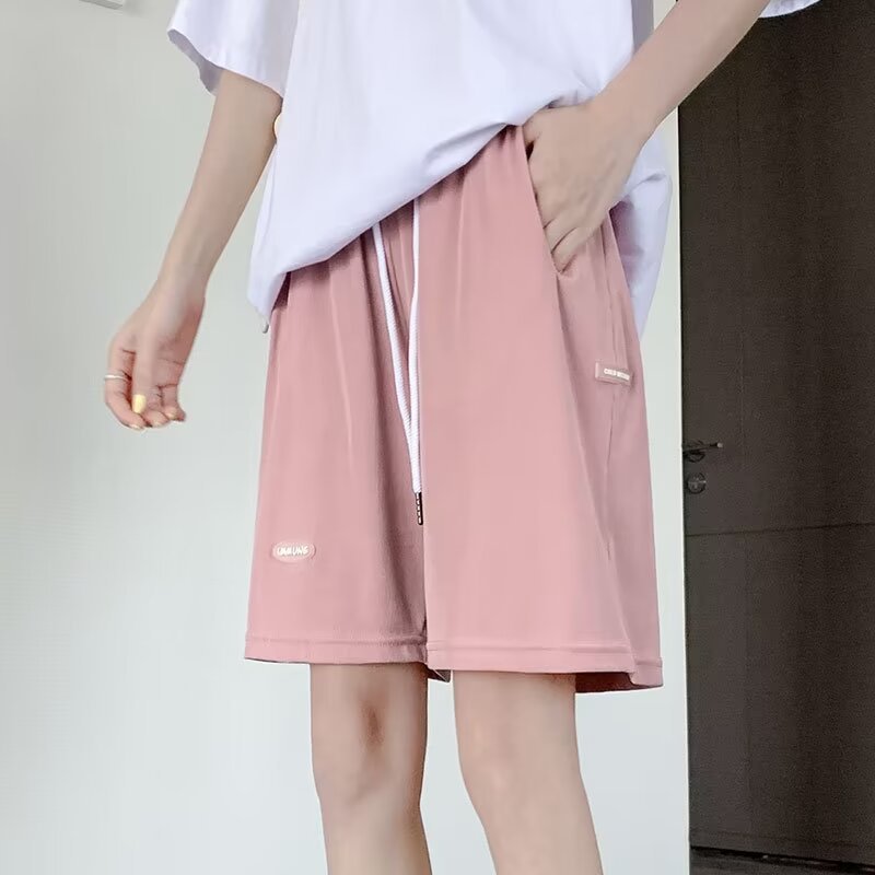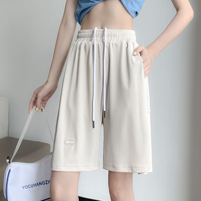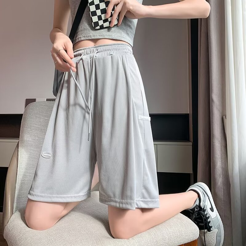 아이스 실크 스포츠 반바지 여자 2024 새로운 여름 여름 작은 남자를위한 얇은 느슨한 캐주얼 넓은 다리 바지스토어 가기