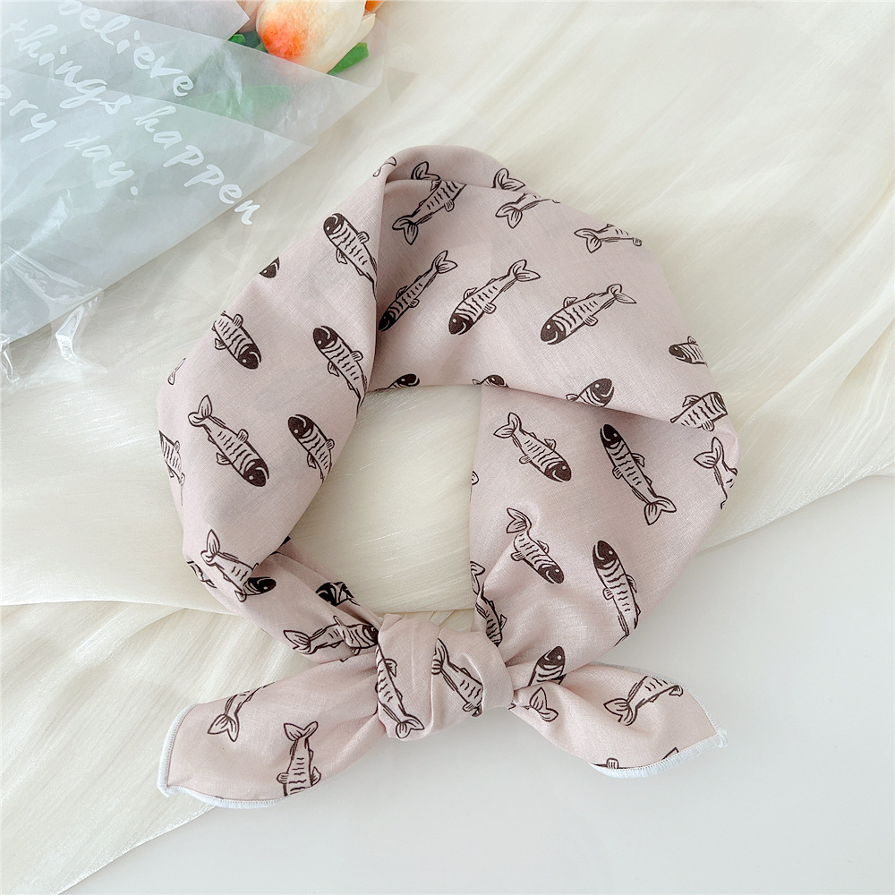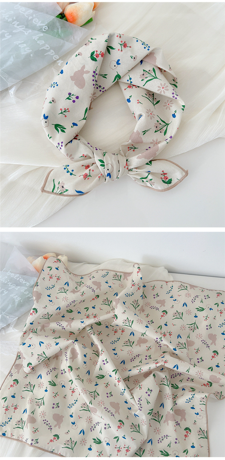 58 면 및 리넨 작은 광장 스카프 여성의 봄과 가을 여름 한국 작은 신선한 한국 스타일 예술적 스카프 머리 벨트 장식 스카프스토어 가기