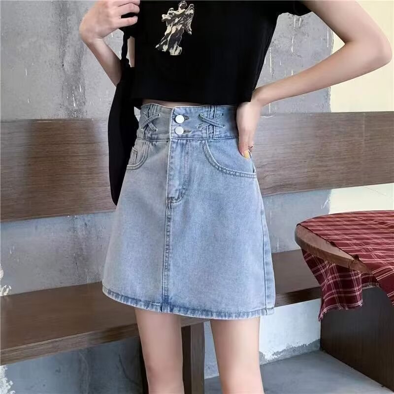 플러스 사이즈 캐주얼 데님 스커트 여성 여름 하이 허리 엉덩이 A 라인 스커트 2024 새로운 슬림 스트레이트 스커트 패션