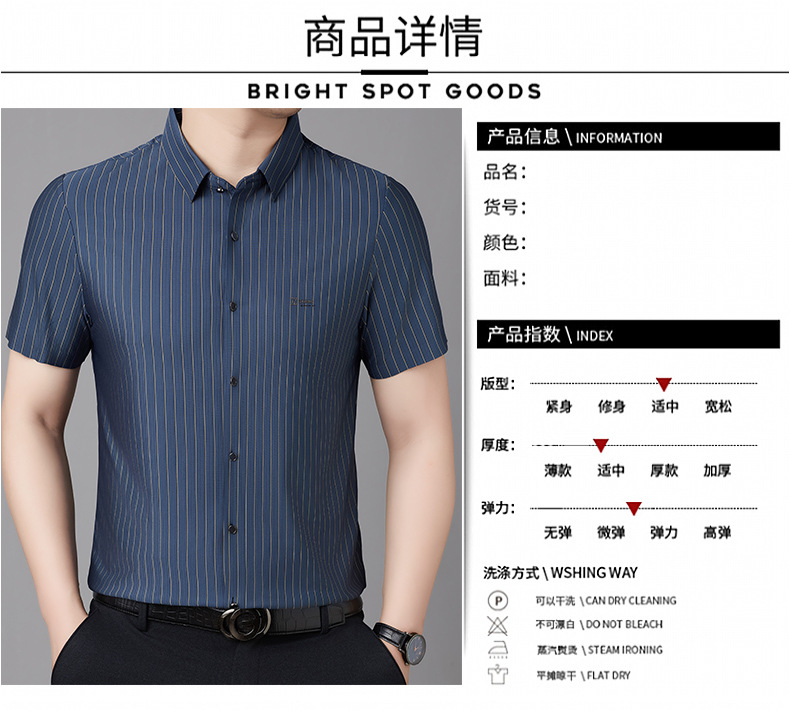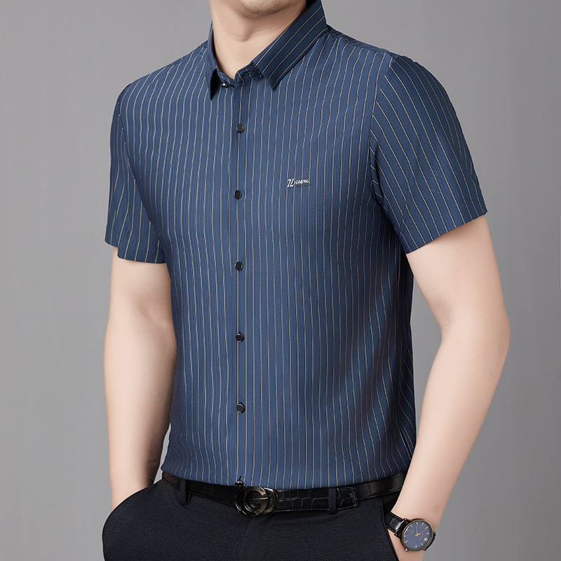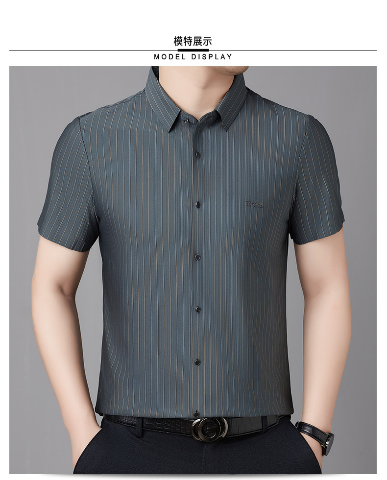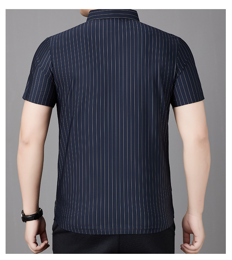 하이 엔드 젊은 남성의 새로운 원활한 핫 드릴링 스트라이프 셔츠 옷깃 짧은 소매 여름 비즈니스 캐주얼 패션 셔츠 조수스토어 가기