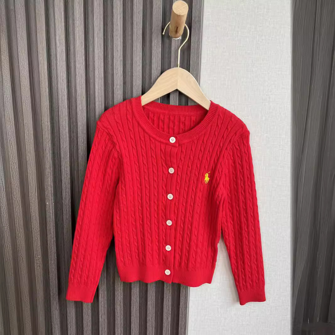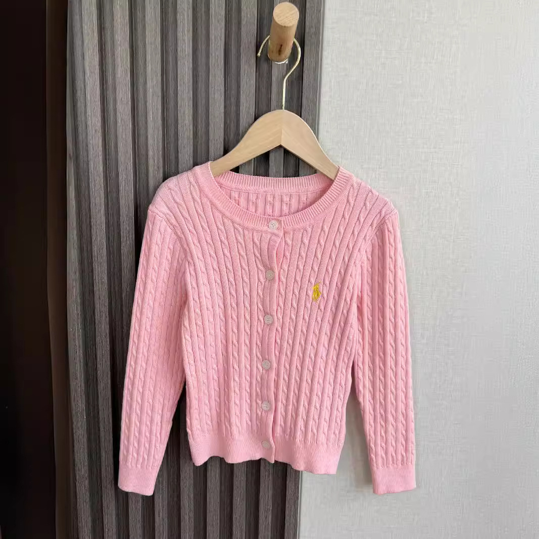여아용 폴로 가디건, 봄/가을용, 중대형 아동용, 순면, 자수 니트 캐주얼 가디건스토어 가기