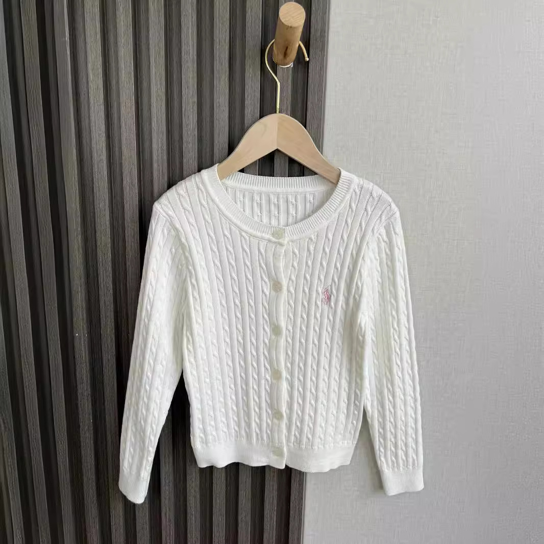 여아용 폴로 가디건, 봄/가을용, 중대형 아동용, 순면, 자수 니트 캐주얼 가디건