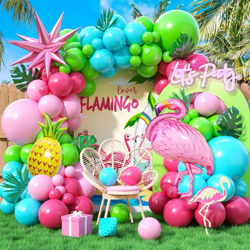 열대 풍선 아치 세트 파인애플 플라밍고 포일 풍선 여름 하와이 루우 파티 장식