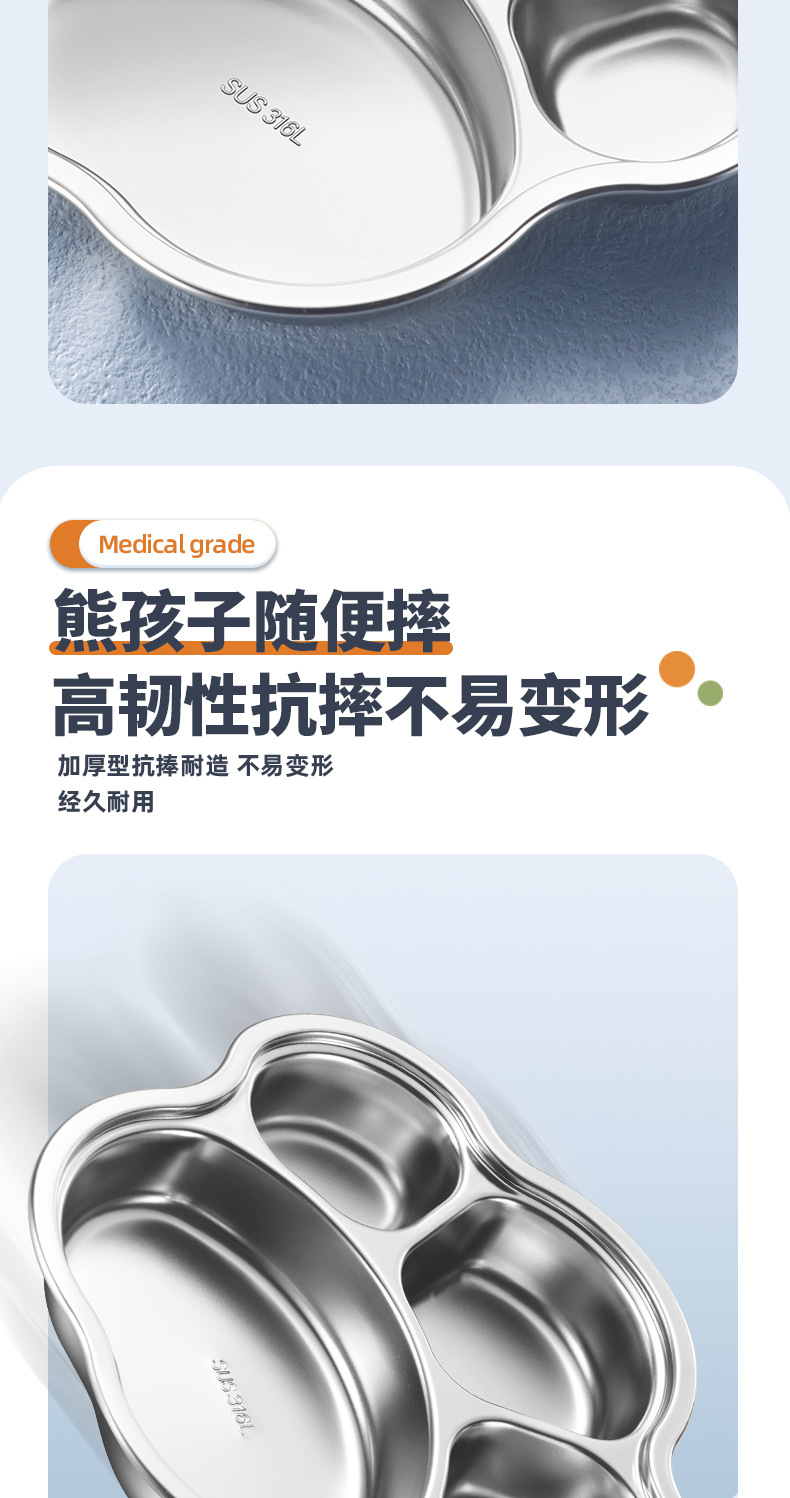 귀여운 곰의 구덩이 음식 학년 316 스테인레스 스틸 어린이 디너 플레이트 스플릿 플레이트 유치원 가정용 아기 먹는 그릇