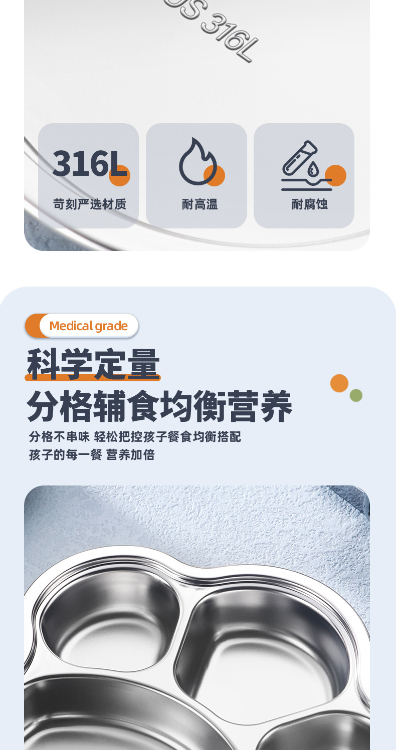 귀여운 곰의 구덩이 음식 학년 316 스테인레스 스틸 어린이 디너 플레이트 스플릿 플레이트 유치원 가정용 아기 먹는 그릇스토어 가기