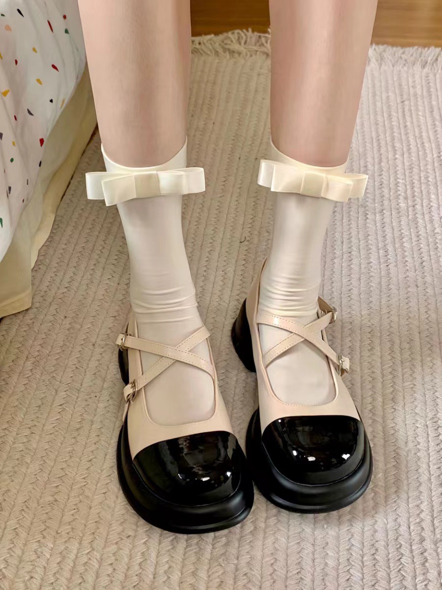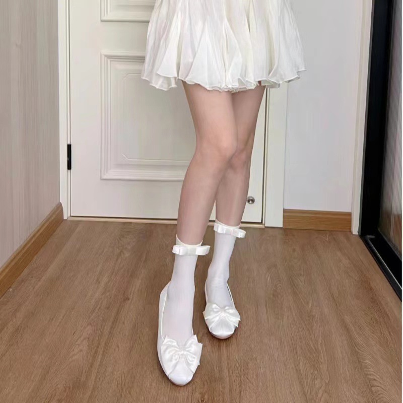 흰색 한 단어 활 중간 튜브 양말 어린이 여름 얇은 Jk 더미 양말 달콤한 소녀 메리 제인 송아지 양말