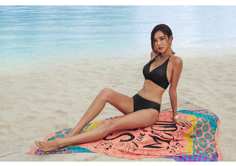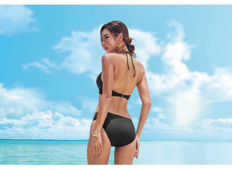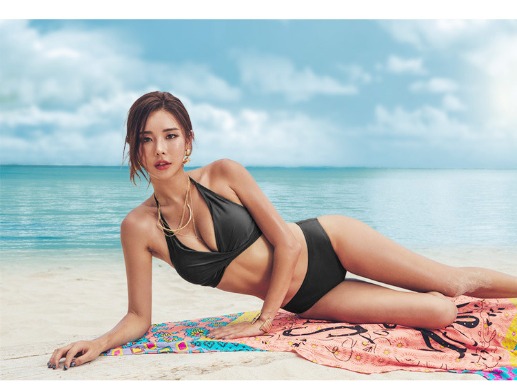 모델 아트 테스트 블랙 스플릿 2 피스 섹시한 3 점 목 매달린 작은 가슴 모임 비키니 수영복 온천