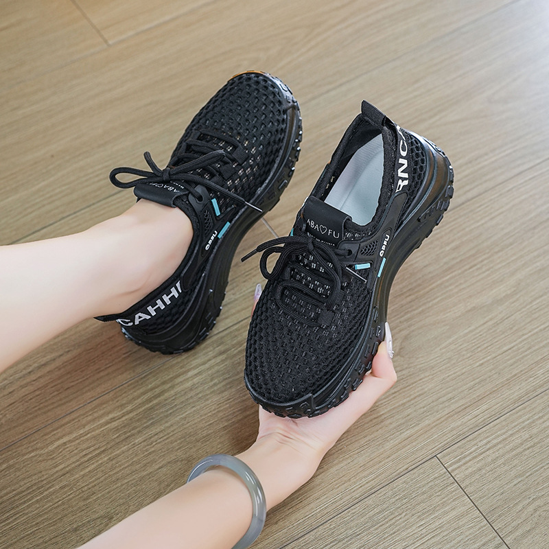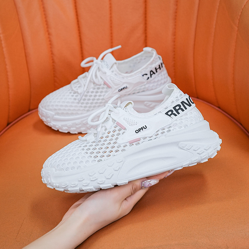 여름 비행 직조 신발 여성 메쉬 운동화 2024 새로운 통기성 두꺼운 단독 증가 인즈 한국식 올매치 캐주얼스토어 가기