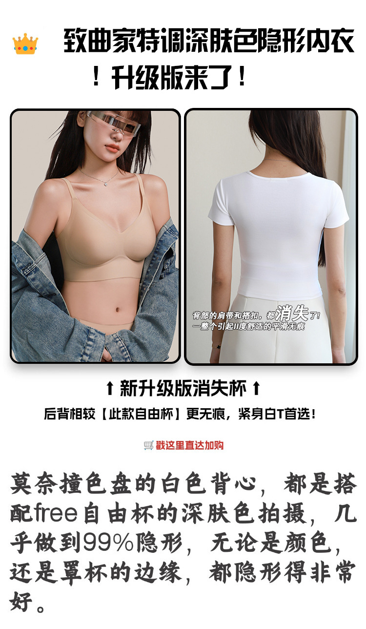 정품 파운데이션처럼 보이는 여성용 노사이즈 브라, 큰 가슴을 작아 보이게 하는 스포츠형 노와이어 브라