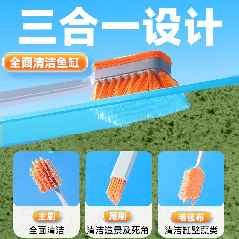 예 작은 물고기 탱크 브러시 3 대 1 청소 유물 죽은 각도 청소 도구 유리 내벽 조류 제거 브러시 아마존