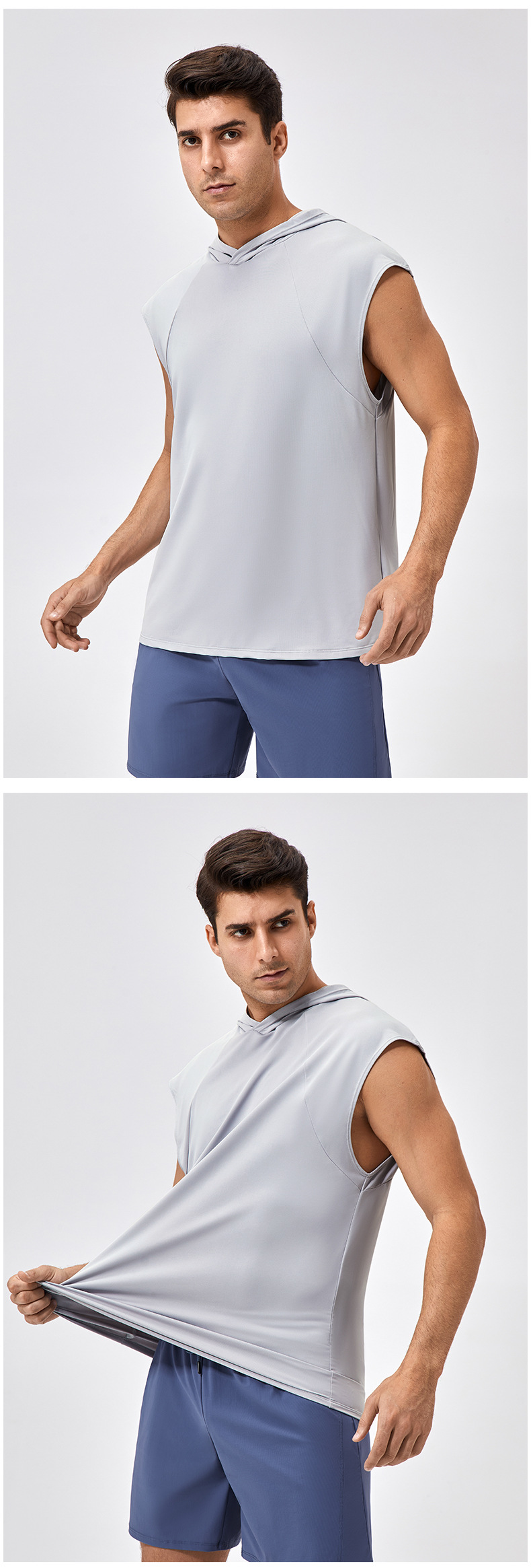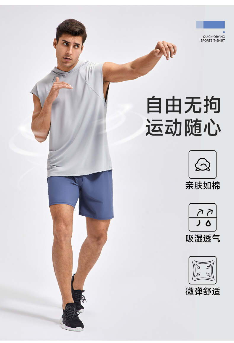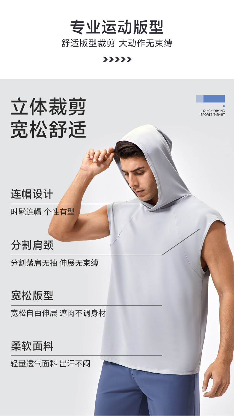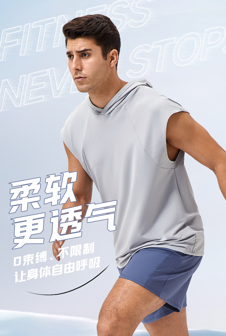 유럽과 미국의 넓은 어깨 스포츠 조끼 남자의 느슨한 빠른 건조 농구 스포츠 달리기 최고 후드 피트니스 조끼 41116스토어 가기